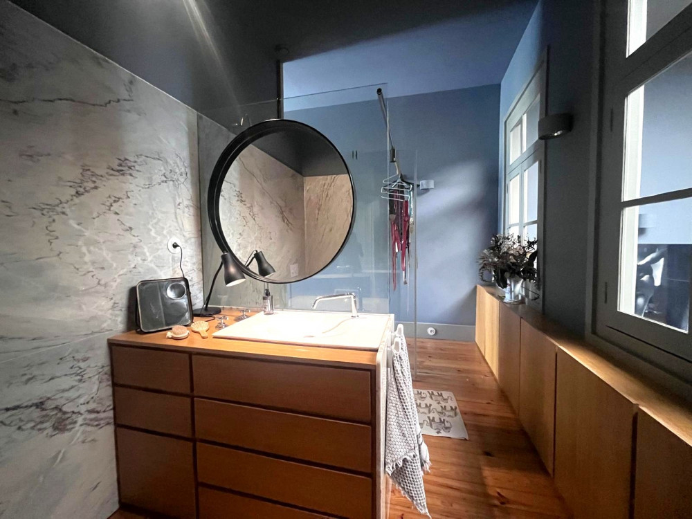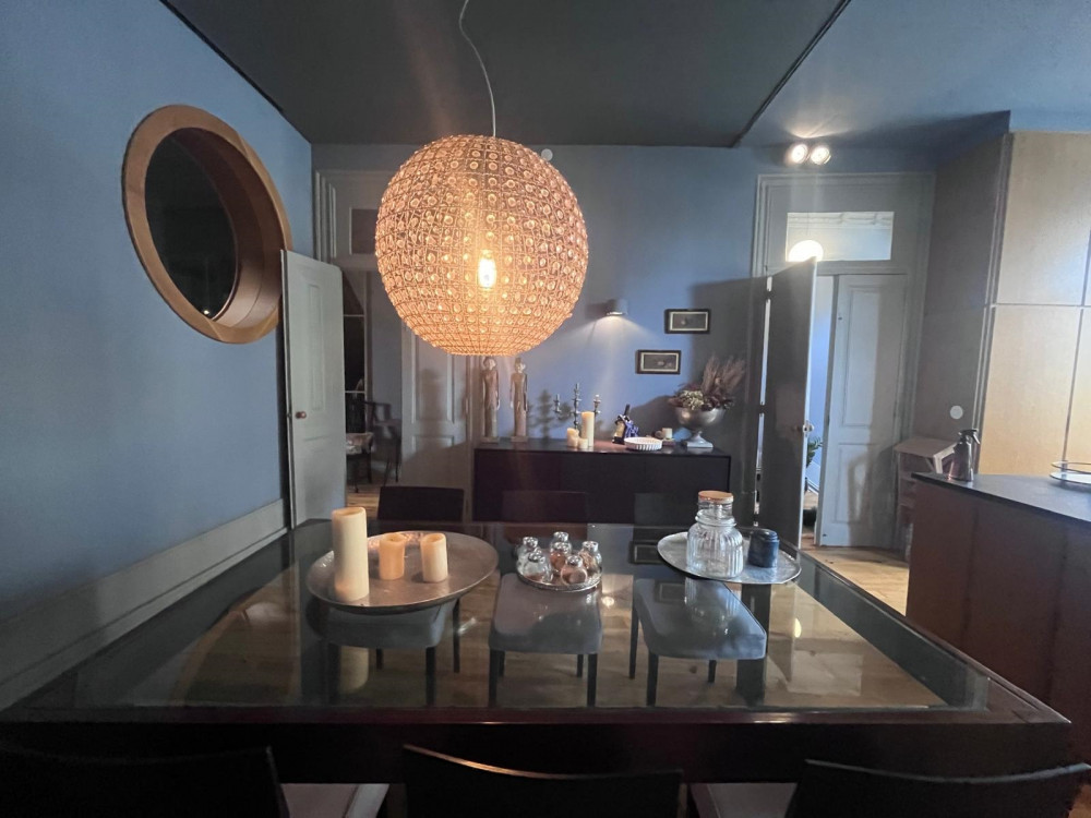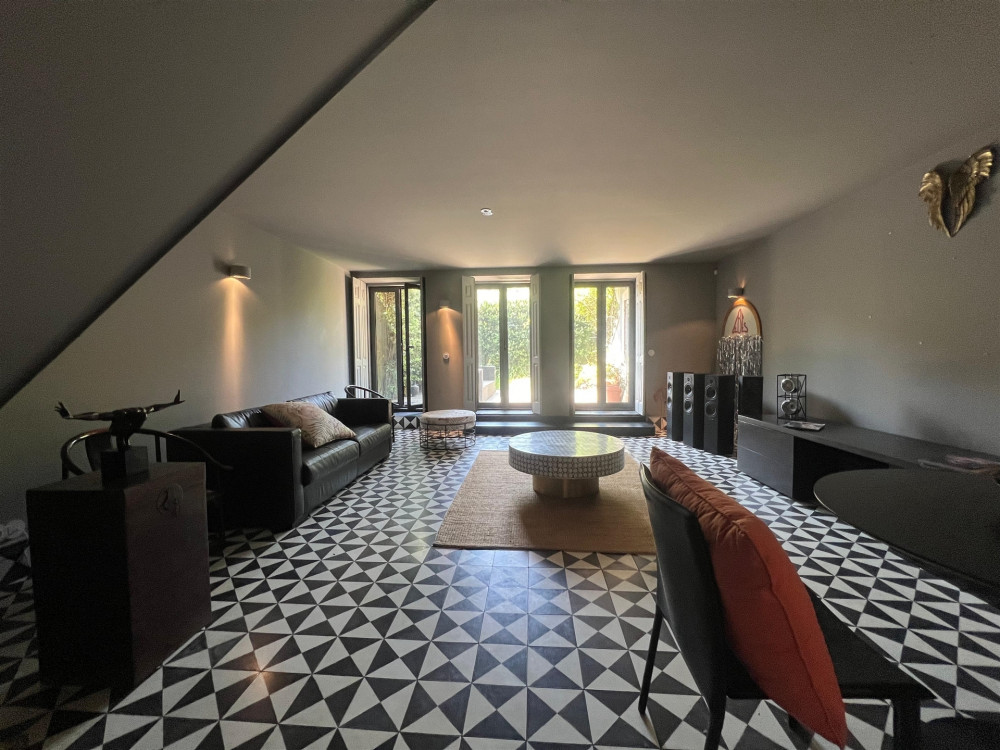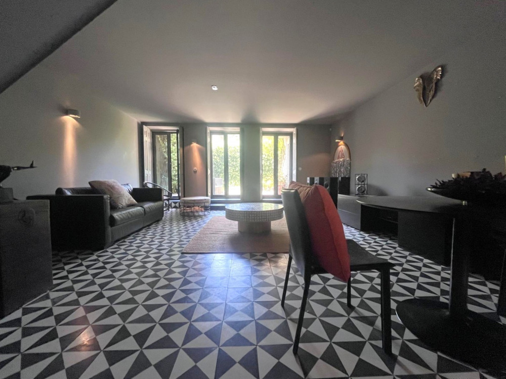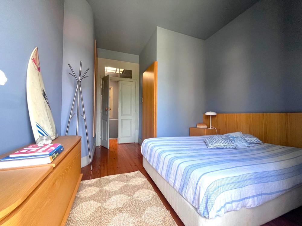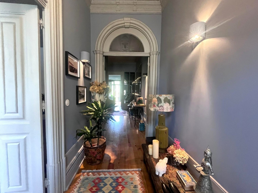 Charming house renovated in 2015 that preserves the original character of the period, maintaining the ornate facades and ceilings, while adopting the latest standards of quality and functionality. The project, designed by architect Nuno Rodrigues, stands out for its sober and elegant design, which favors and interconnects the light between the internal and external spaces, thanks to its privileged solar orientation and two fronts.