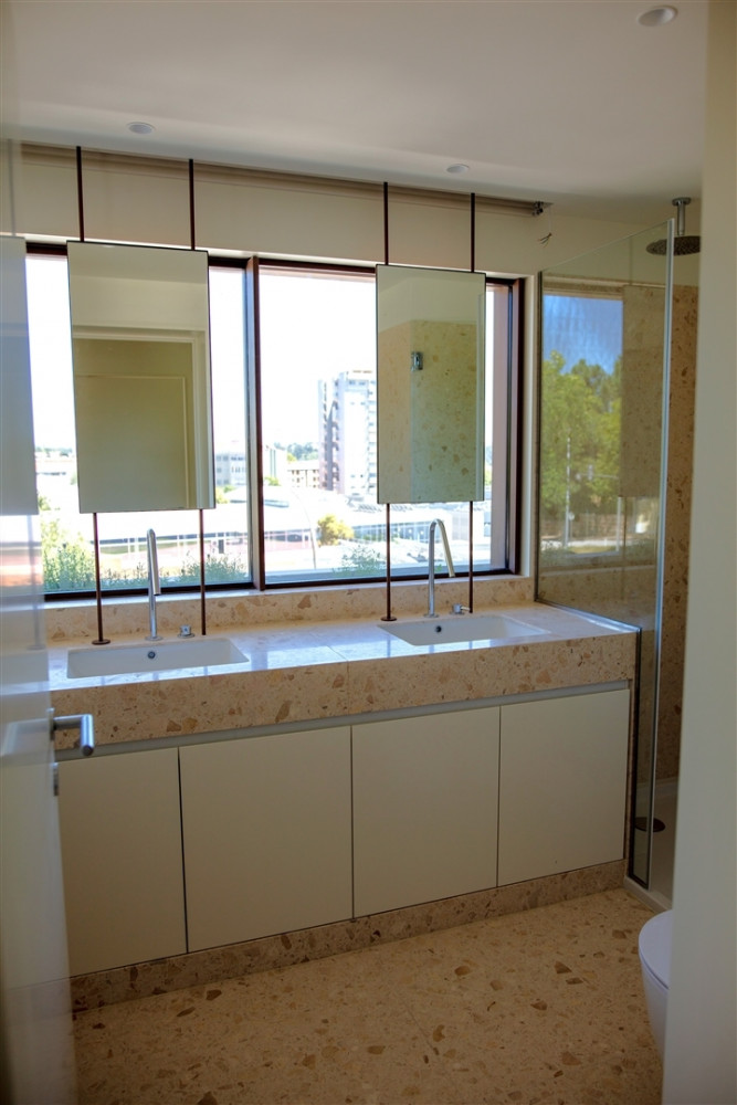 Top: in 12 mm RMC compact marble, with a honed finish and hand-cut