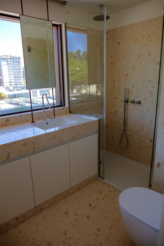 Wall covering: in RMC compact marble, up to 210 cm high.