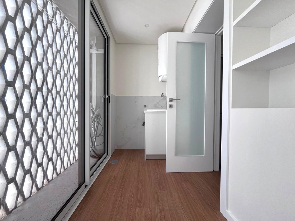It comprises: A generous entrance hall with a storage room. To the left, we find a spacious living room with a fully equipped kitchen and a spacious separate laundry room. Returning to the entrance hall, to the right, we find 3 bedrooms with a shared bathroom and, further ahead, a suite with a balcony.