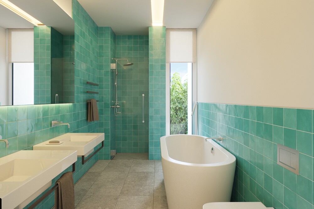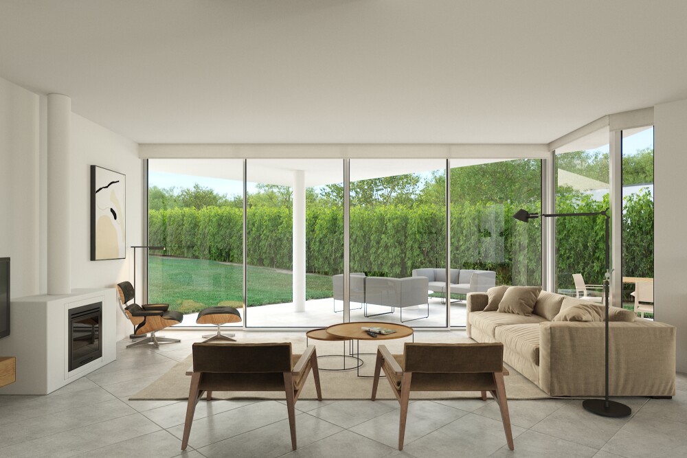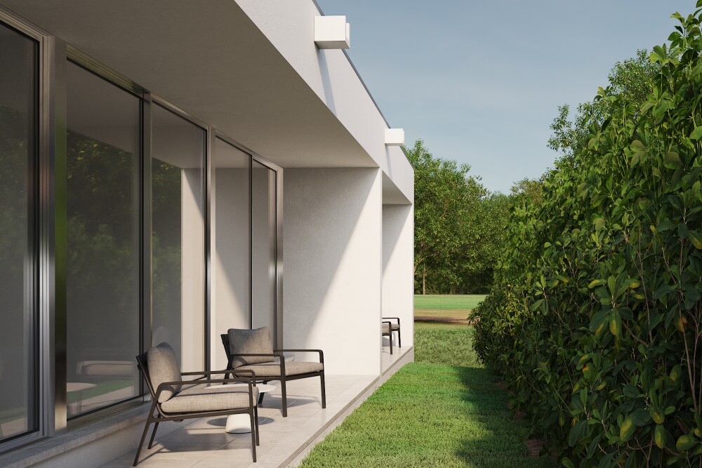 The extensive private garden of the house is south-facing, which allows for excellent sun exposure during the summer and the best enjoyment of the garden and pool.