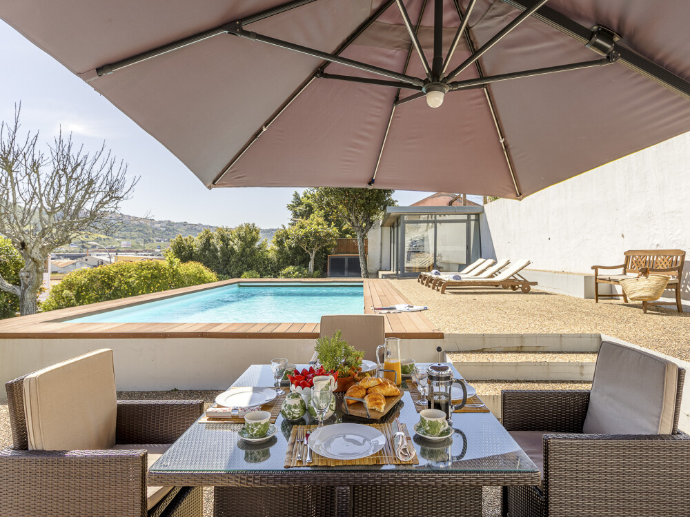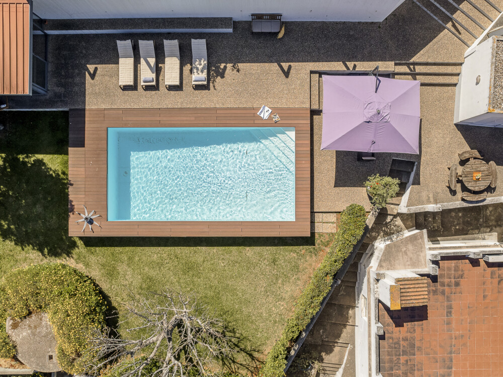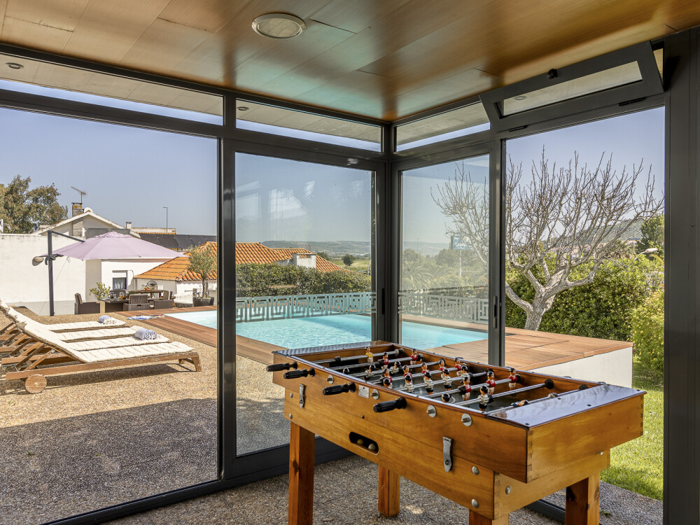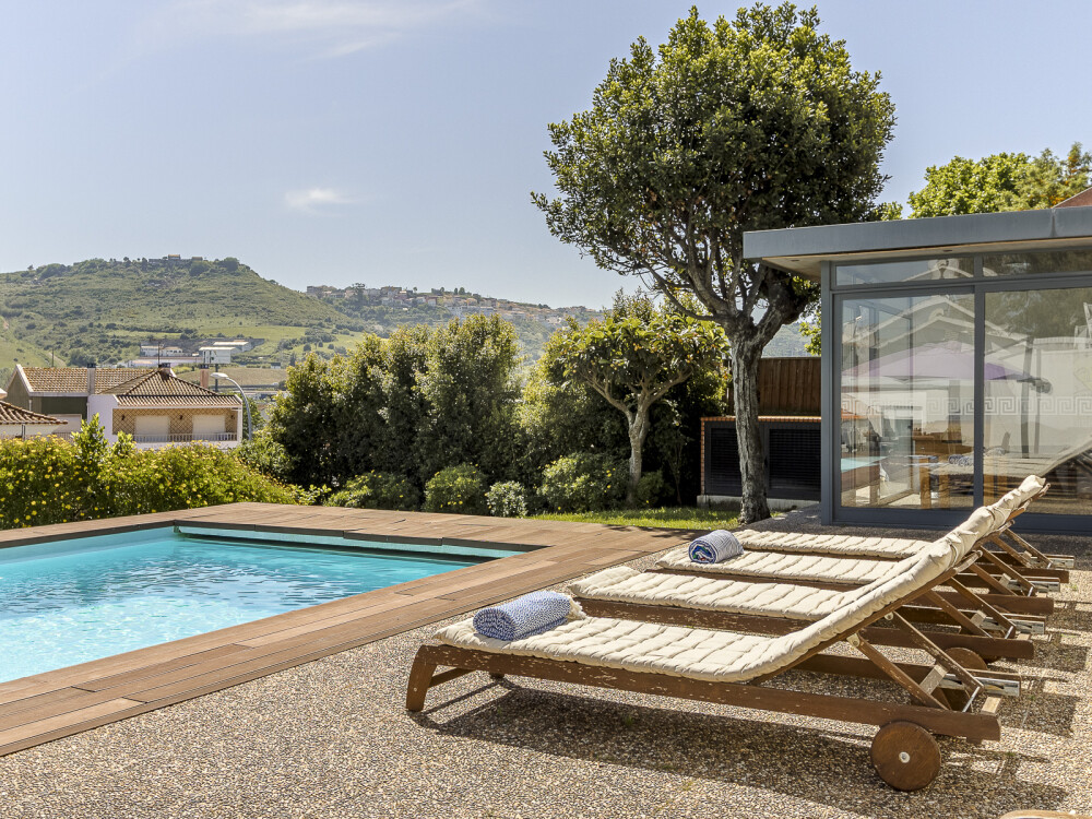 Family condominium featuring three independently used villas, with a closed garage for two cars measuring 40 sqm, swimming pool, pool support changing rooms, and garden on a 1080 sqm plot in Loures, Lisbon.