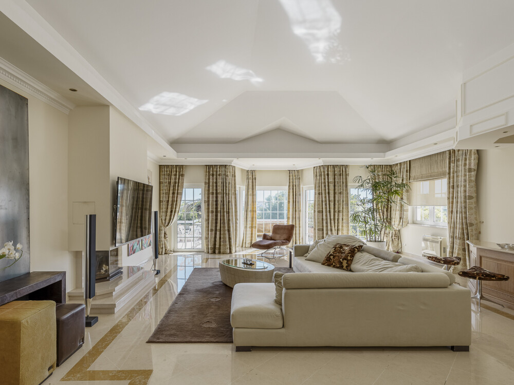 The villa, an architectural project by Architect Alexandre Bento Rodrigues, is spread over three floors with open views to the sea and Estoril Golf Club.
