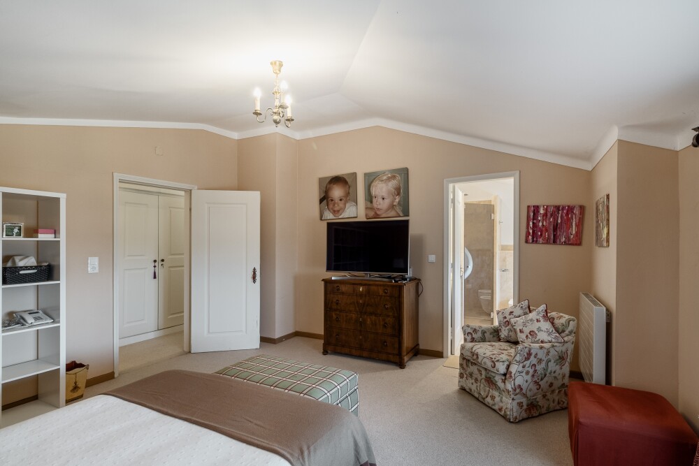 Luxury Amenities: Additional features include four guest apartments, a private chapel, a gym, a tennis court, and a swimming pool, creating a retreat-like atmosphere.