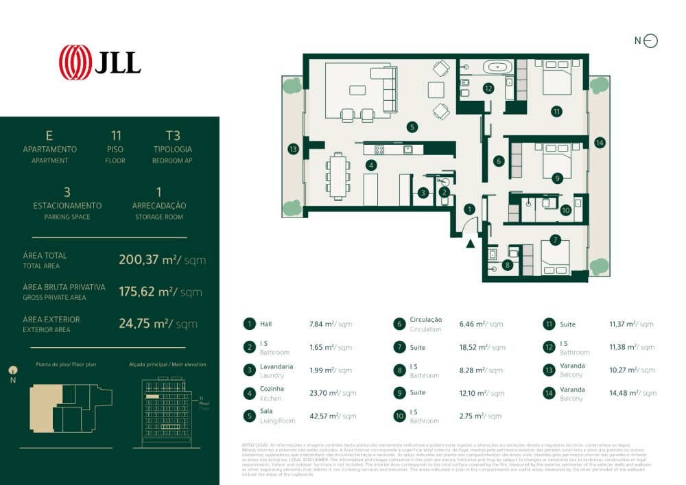 3-bedroom apartment, with 176 sqm of private gross area, balcony, 3 parking spaces and storage room in Pulse Lisboa, located in Avenidas Novas, Lisbon.