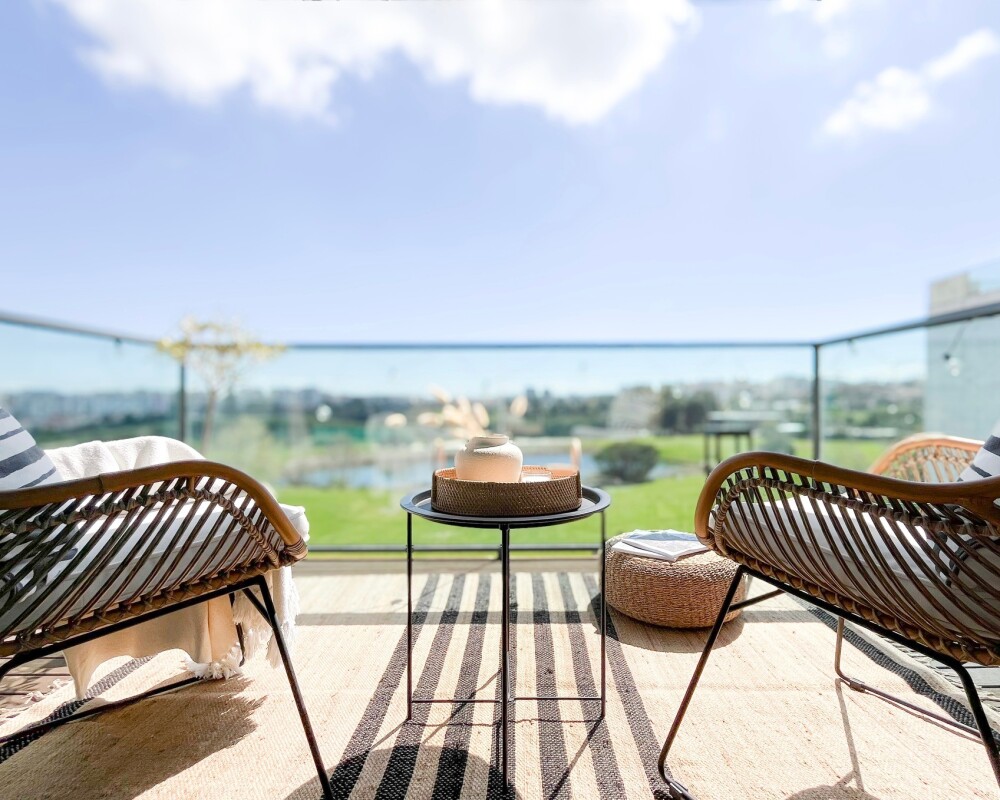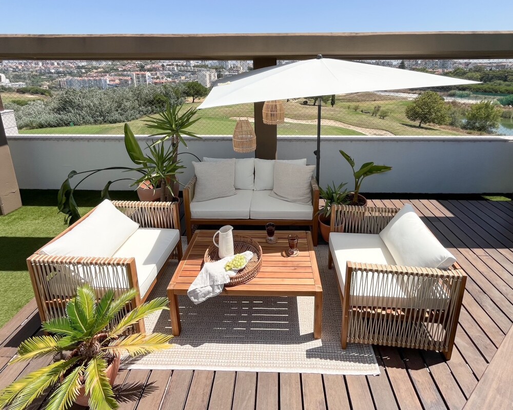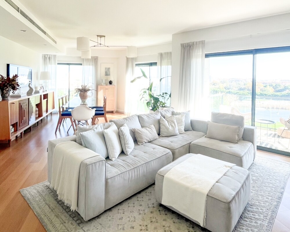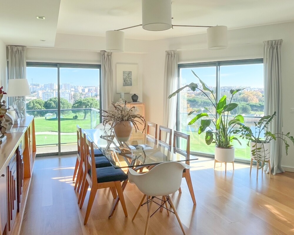 2-bedroom duplex apartment with 139 sqm of gross private area, private swimming pool, views over the golf course and two box garage spaces, located in Quinta dos Alcoutins, Lumiar, Lisbon.