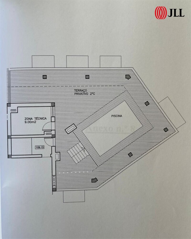 On the upper floor, in addition to the swimming pool, there is a terrace and a bathroom.