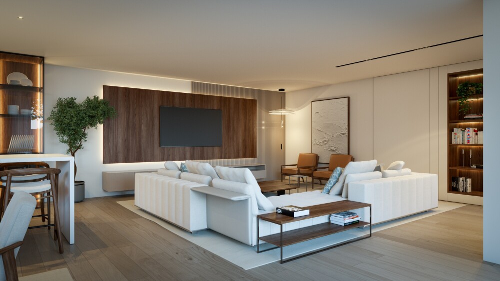 It features premium finishes including VMC system, aluminum frames with thermal break, KNX home automation, Bosch kitchen, Haier wine cellar and noble coverings such as Estremoz marble, Travertine porcelain and oak flooring.