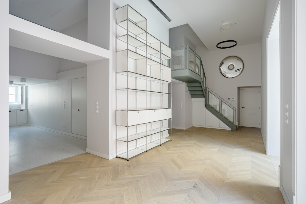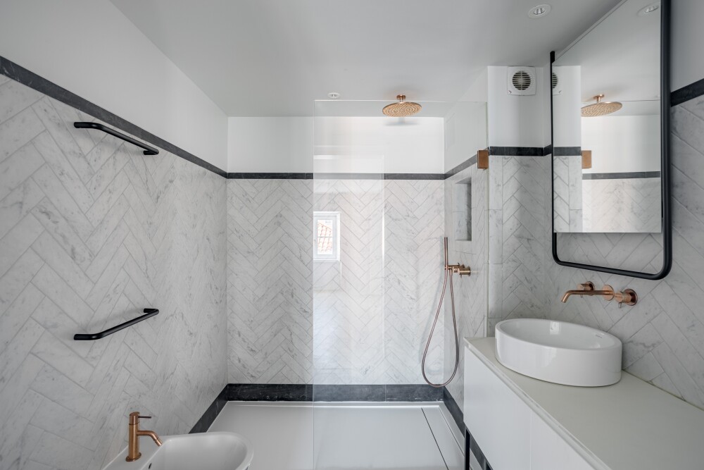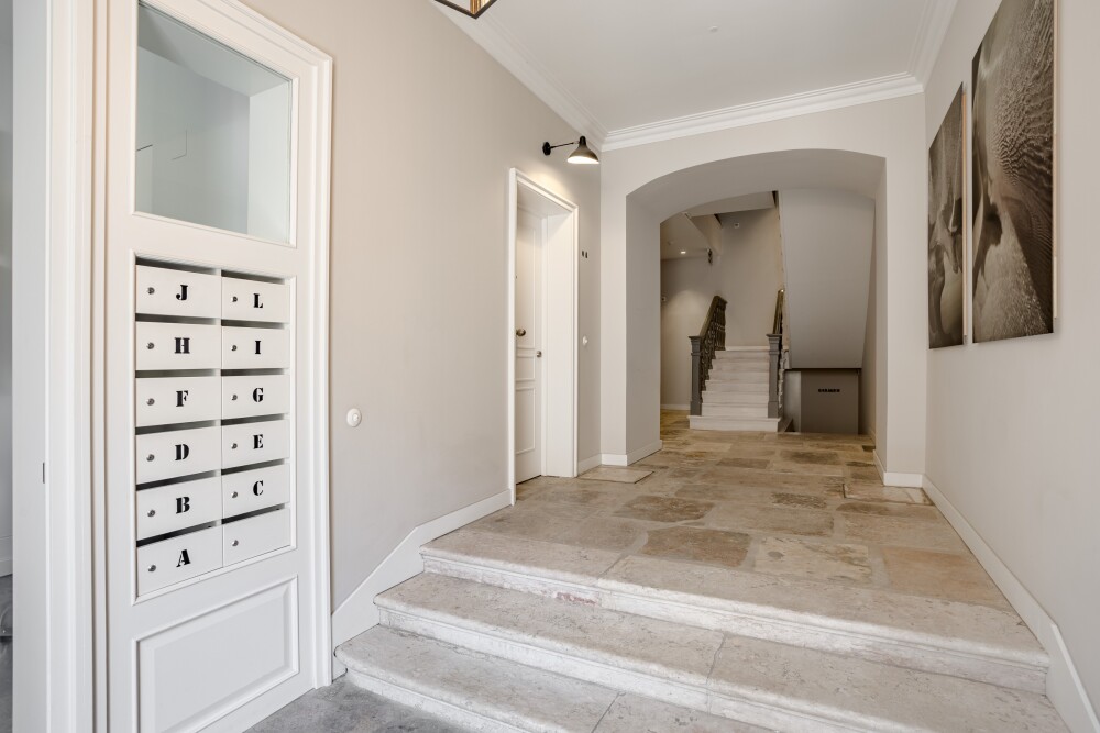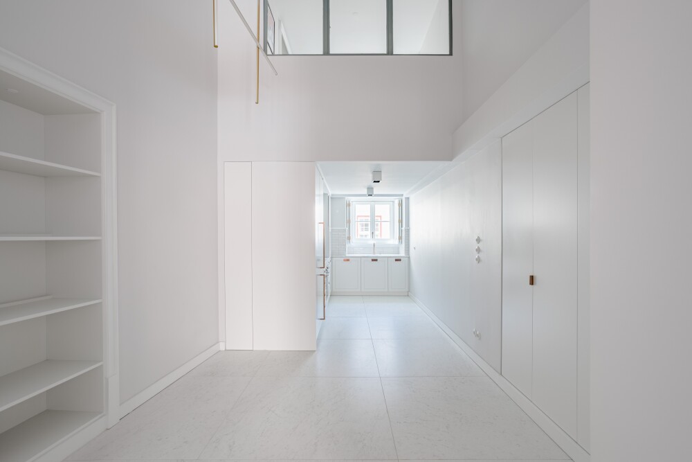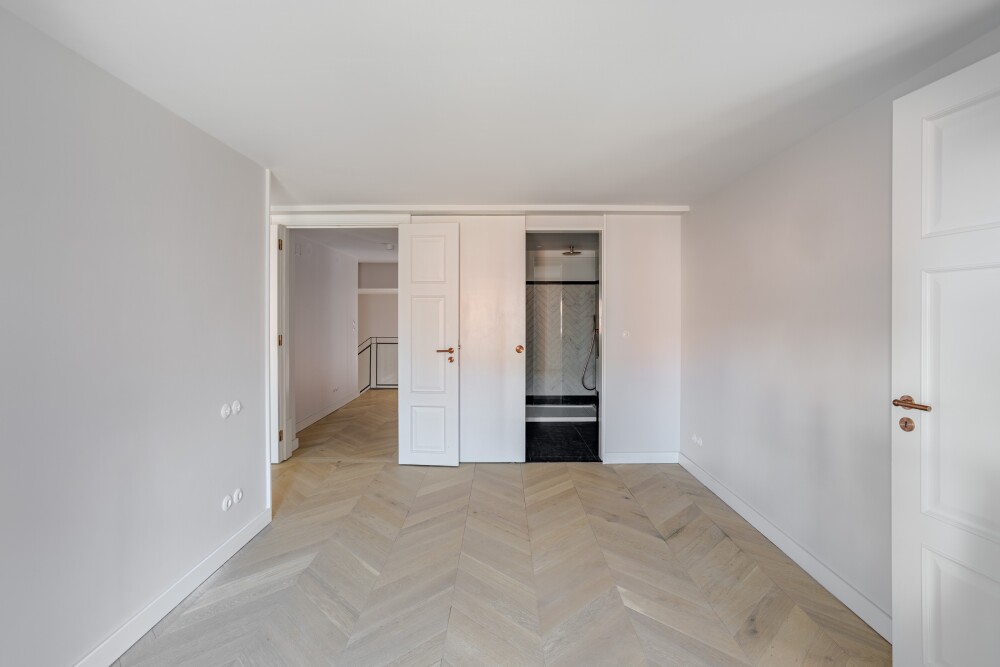 Located in Palácio Ficalho, an 18th-century building restored in 2023 by a renowned Belgian architect, combining classic charm with modern architecture, the apartment is spread over two floors.