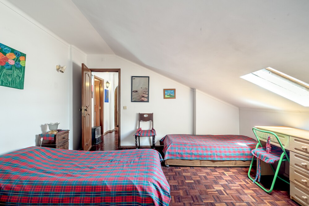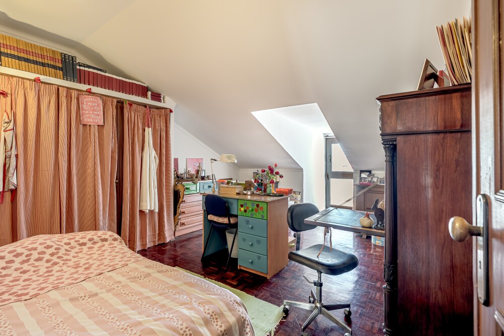 The upper floor, built in an ample attic space, consists of three additional bedrooms – two with balconies and one with a Velux window – all benefiting from abundant natural light.