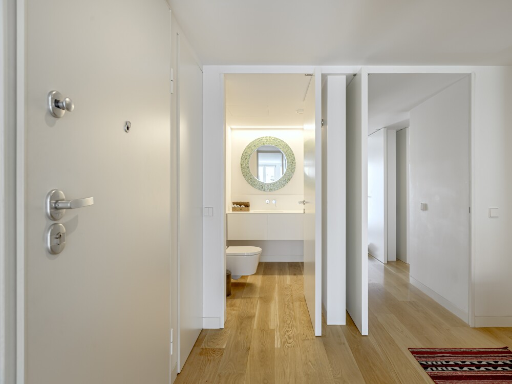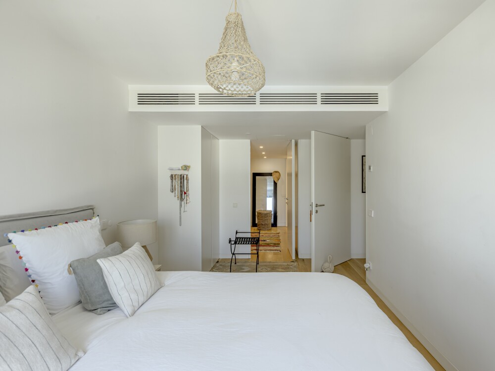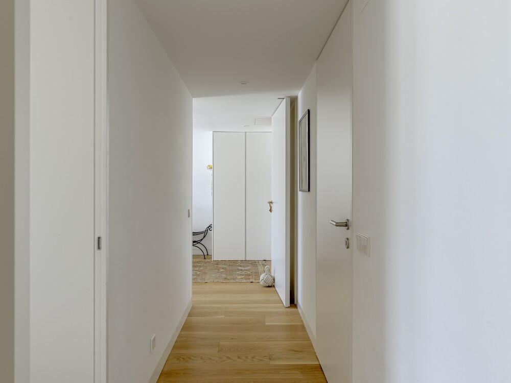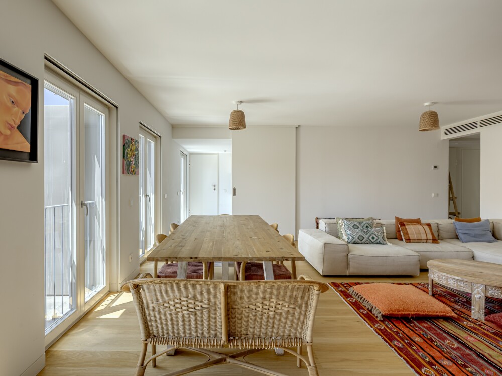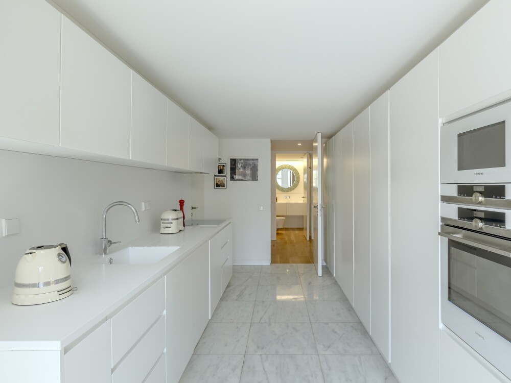 T3 apartment with 160 m² of private gross area, with two parking spaces in a 49 m² garage and a rooftop terrace of 77 m² with private swimming pool, located in the Unique Belém con…
