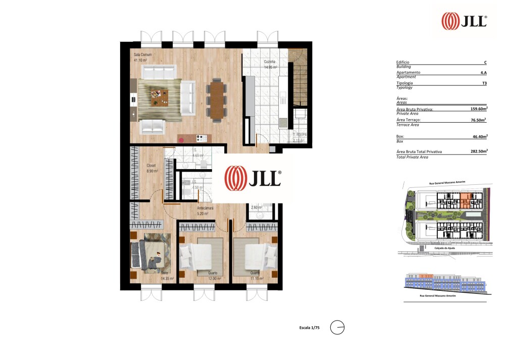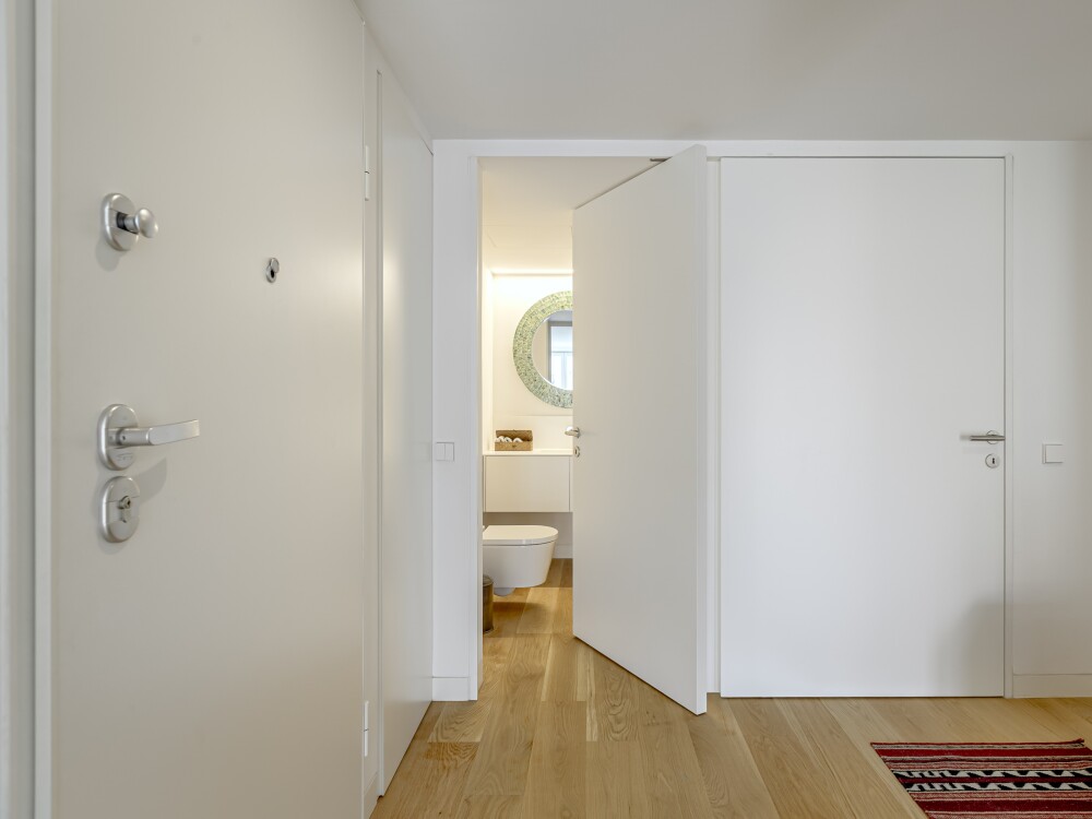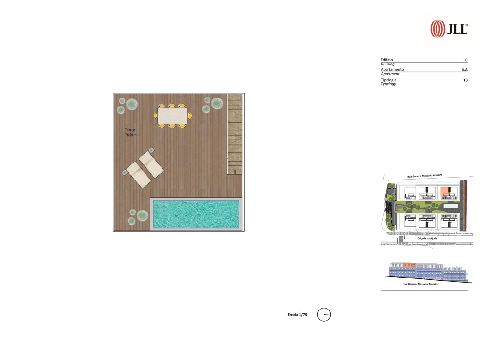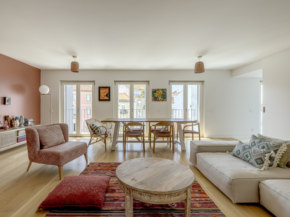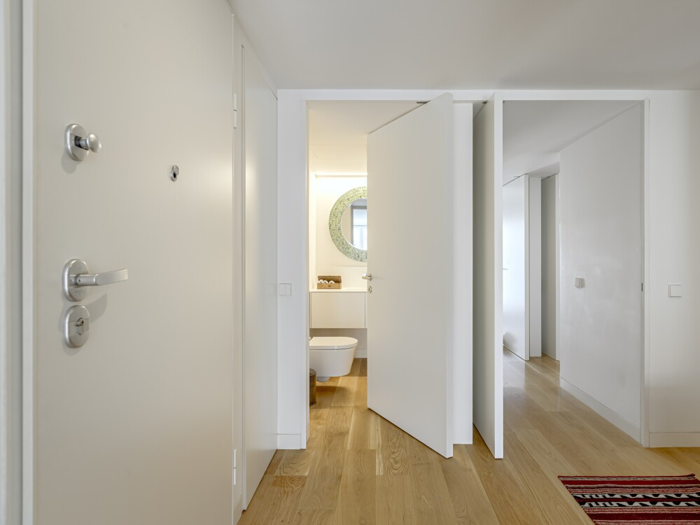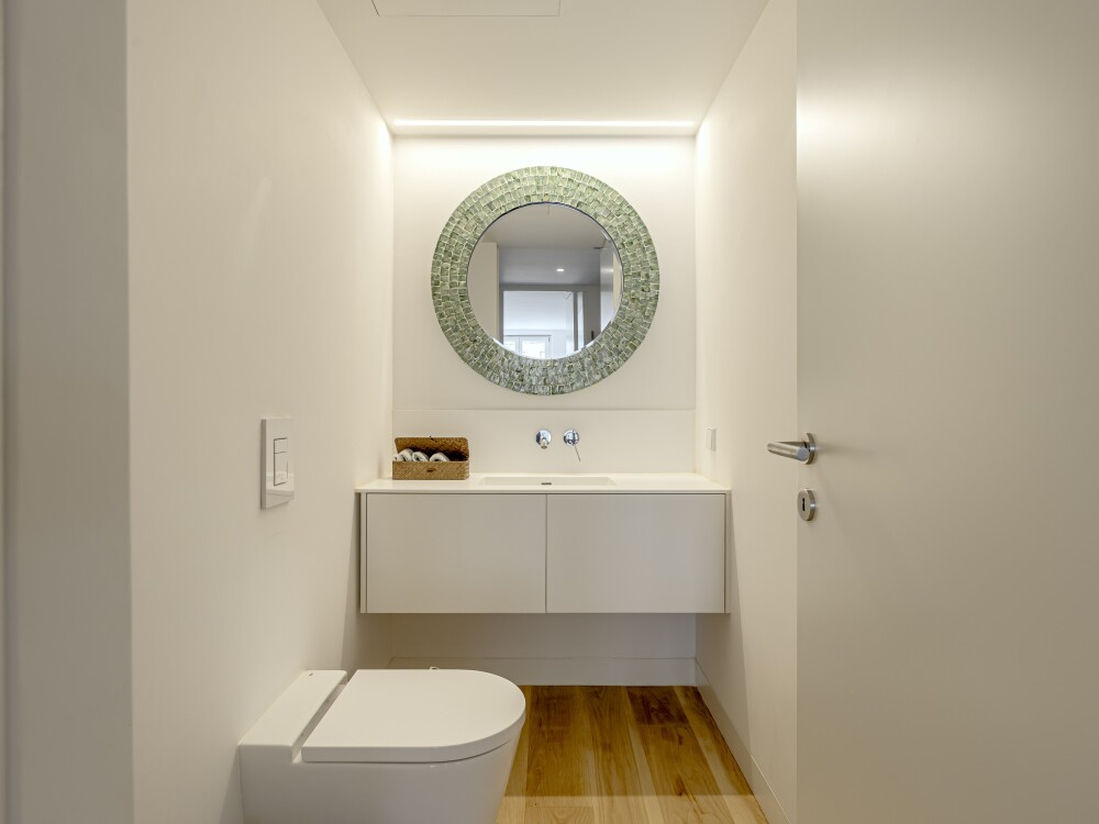 T3 apartment with 160 m² of private gross area, with two parking spaces in a 49 m² garage and a rooftop terrace of 77 m² with private swimming pool, located in the Unique Belém con…