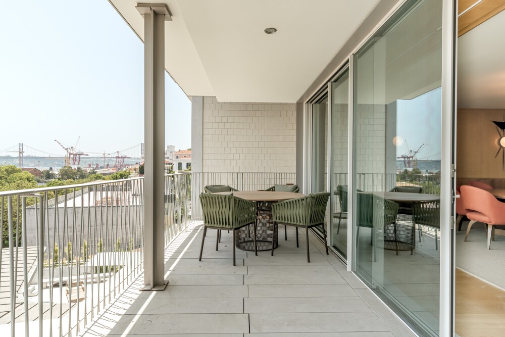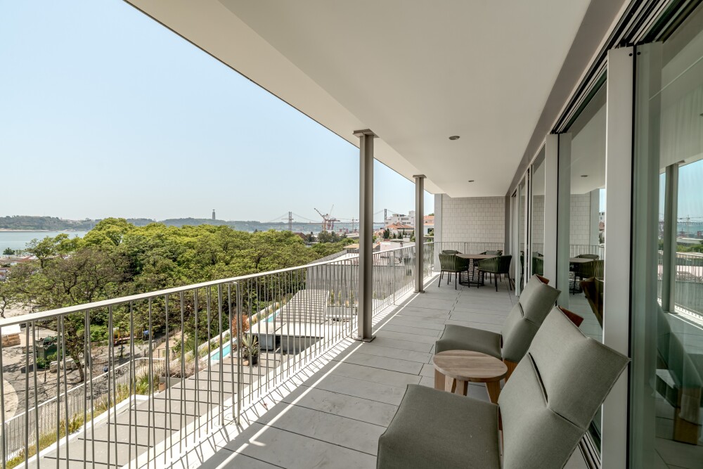 4-bedroom apartment with 248 sqm of gross private area, 35 sqm terrace, garage, located in a building with swimming pool, spa and gym, panoramic views over the Tagus River, towards…