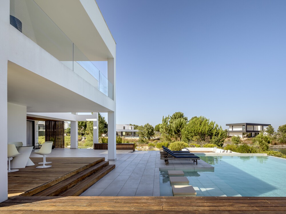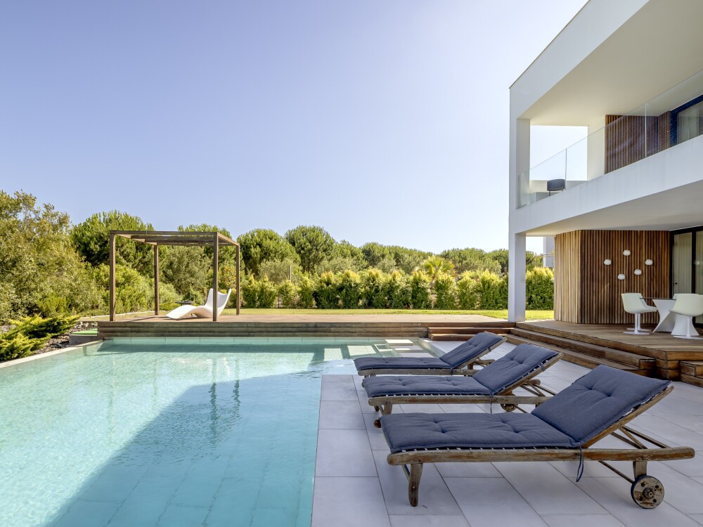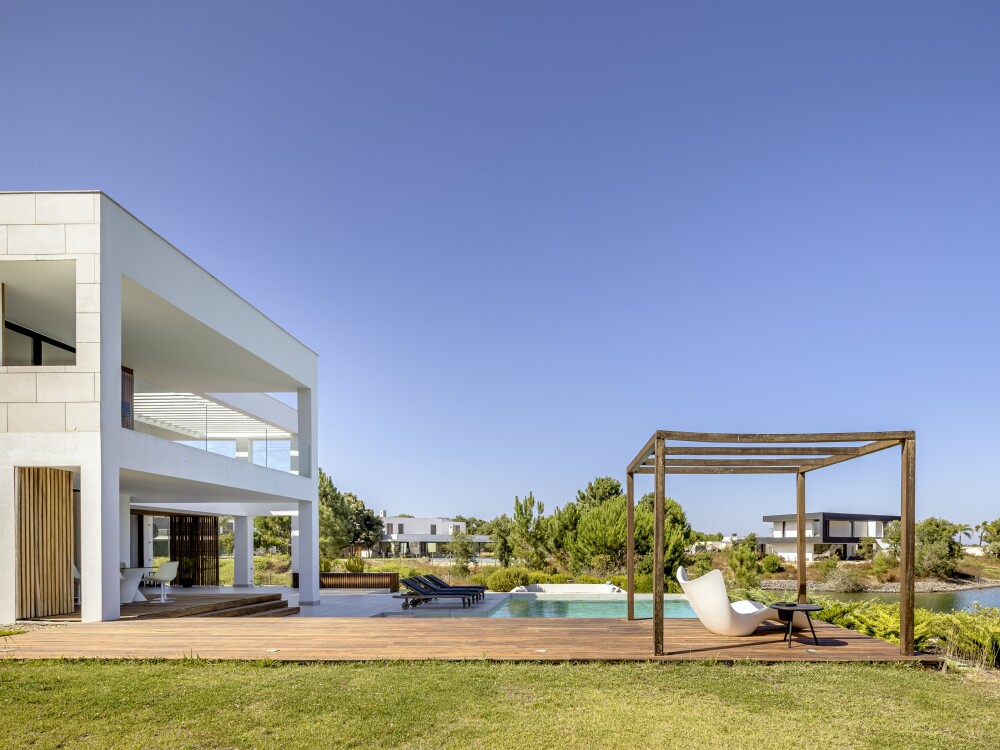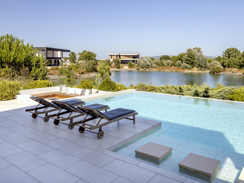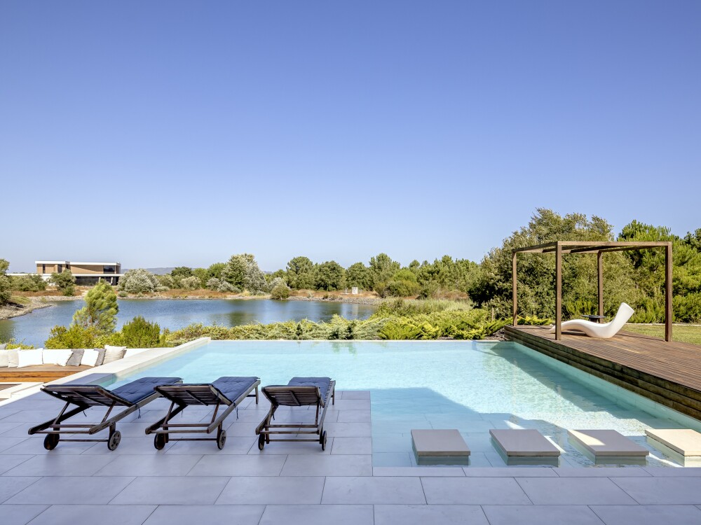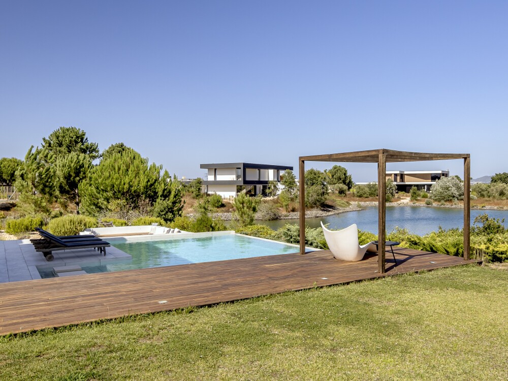 4-bedroom villa with 320 sqm of gross floor area, swimming pool, garden, lake view and parking for two vehicles in Herdade do Perú, Quinta do Conde, Sesimbra.