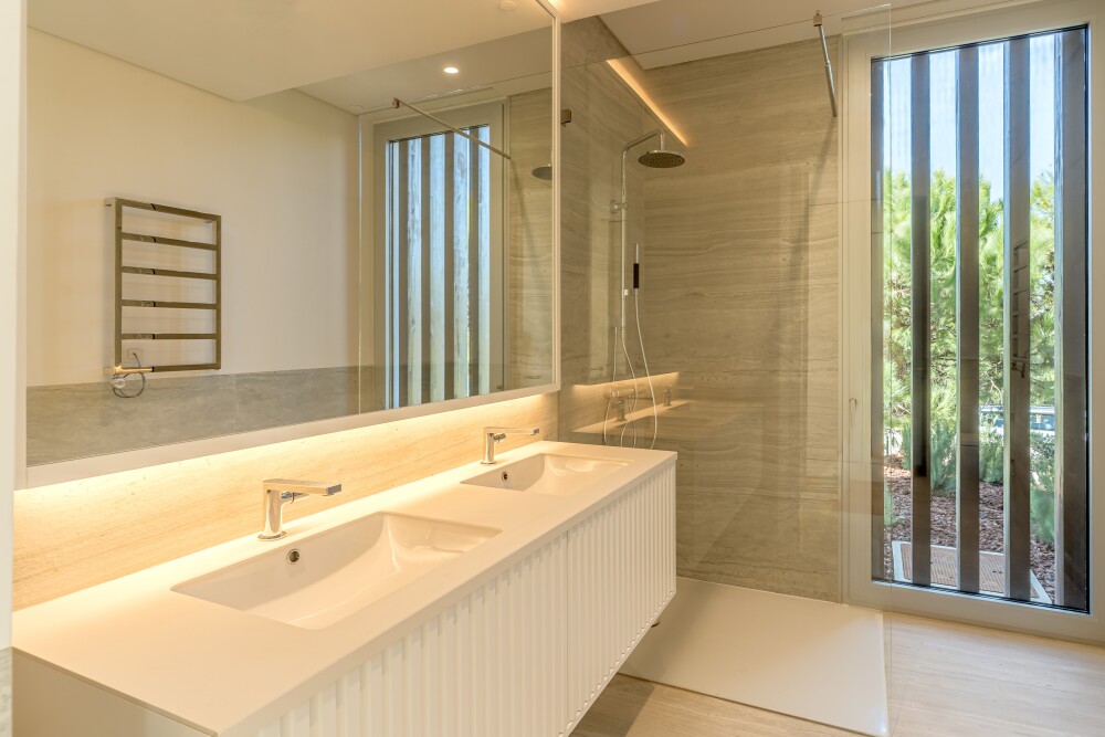 T4+1 villa with 336 sqm of gross construction area with swimming pool and garage, set on a 1354 sqm plot, located in the gated Bloom condominium, in the prestigious Quinta da Marinha, Cascais.