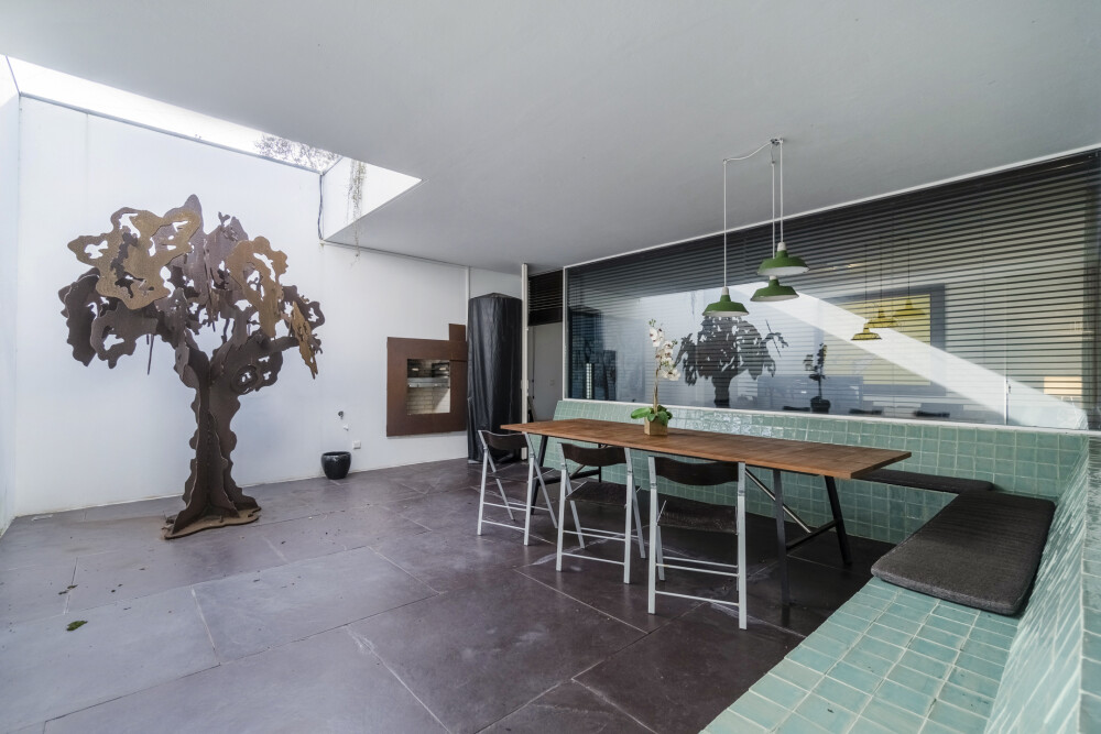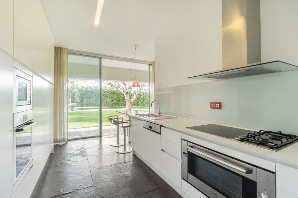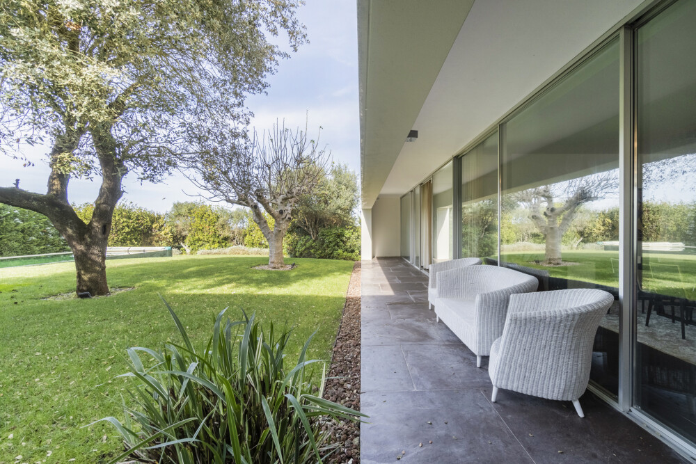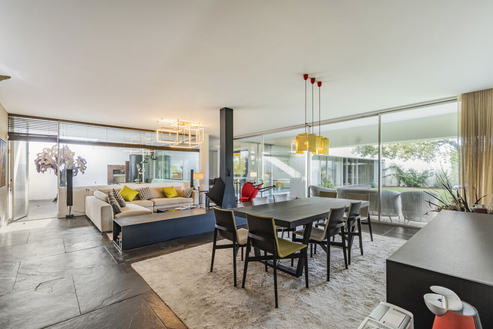The villa, designed by Architect Nuno Graça Moura, features a 77 sqm living room that creates various interconnected environments within a single space.