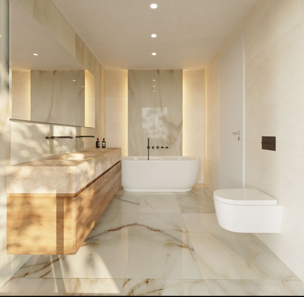 The first floor has four suites of 14 and 15 sqm, and a 21 sqm master suite with wardrobes and exit to a terrace.