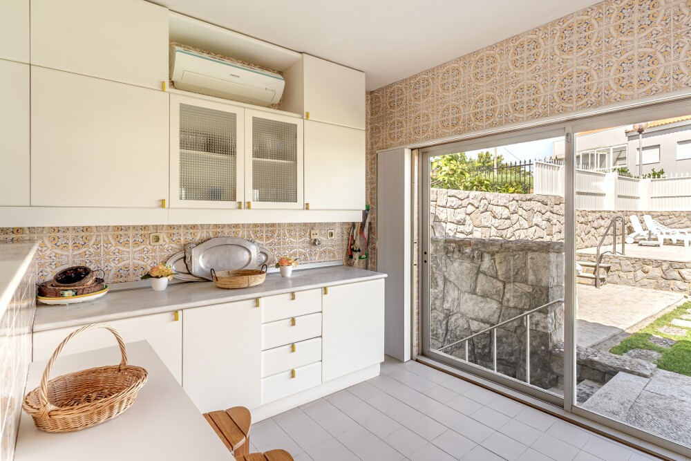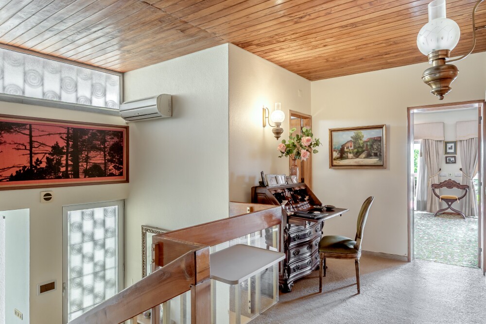5-bedroom villa with 318 sqm of gross building area, sea view, comprising three floors, with garden and garage, set on a 504 sqm plot, in Parede, Cascais.This villa has extensive t…