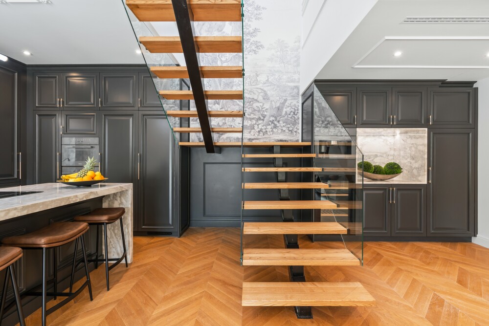 On the upper floor, there are 2 suites with walk-in closets and high ceilings, plus access to a terrace.