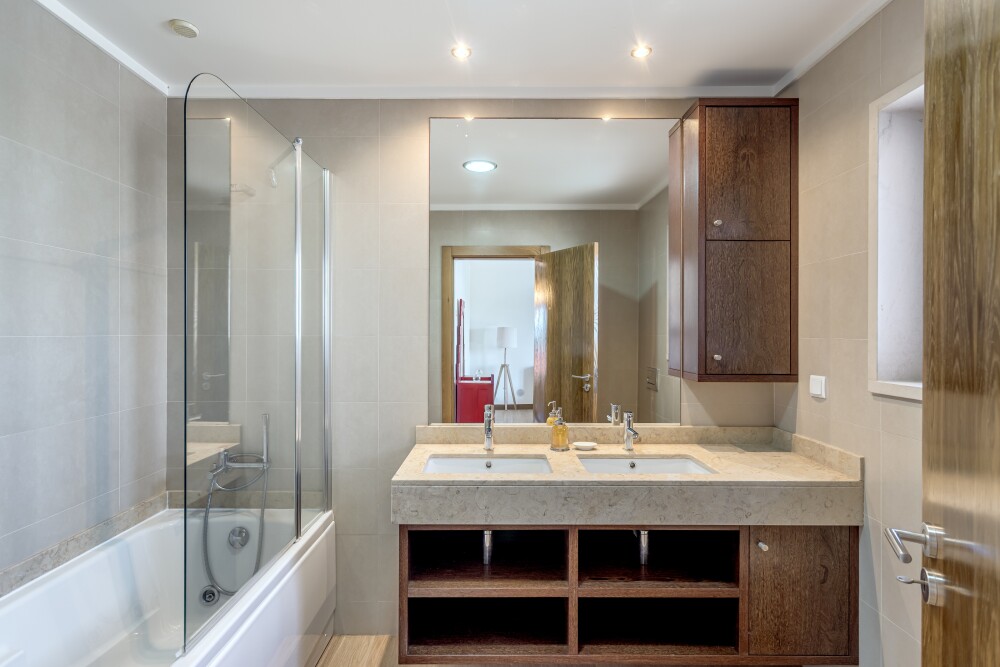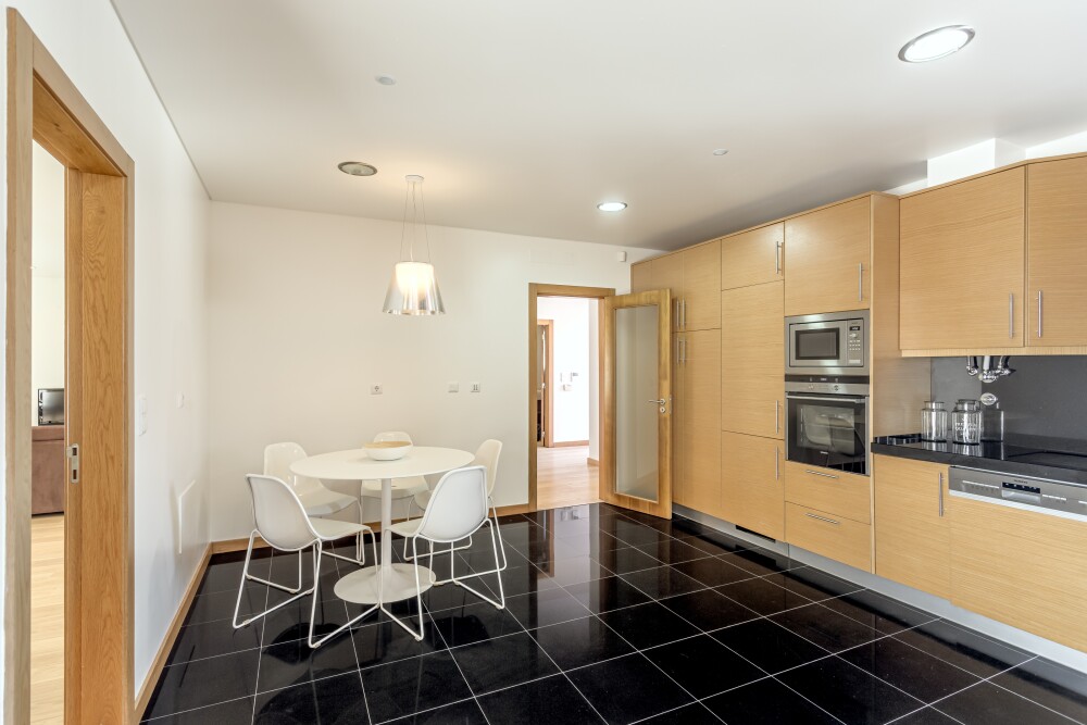 The ground floor features a spacious living and dining area with direct access to the private garden, seamlessly connected to a well-equipped kitchen, also at the same level, offers one bedroom and a full bathroom, offering flexibility for guests staying or home-office.