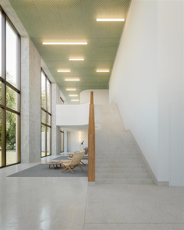 On the upper floor, we have the private area, with three suites of 28 sqm, 26 sqm and 13 sqm, respectively.