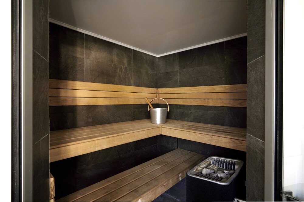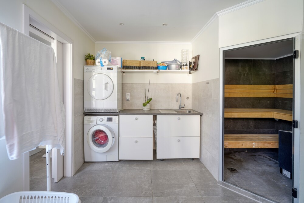 Outside, in addition to the laundry room with sauna and full bathroom, there is the heated pool, an outdoor hot water shower, the multipurpose area of the machine house and storage room, as well as the box garage.