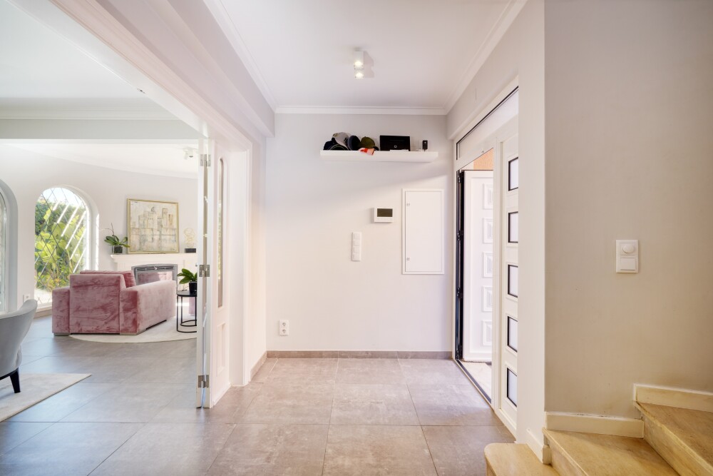 The house, renovated with noble materials, features 10 cm external thermal insulation and includes underfloor heating in the kitchen and bathrooms, a modern fireplace in the living room, solar panels, and spacious, well-distributed interior areas.5 minutes walking distance from Aprendizes Active Learning School, 8 minutes walking distance from King's College School, 15 minutes driving distance from Salesianos de Manique school and Colégio dos Maristas de Carcavelos, and international schools such as IPS - International Preparatory School and TASIS Portugal, St.