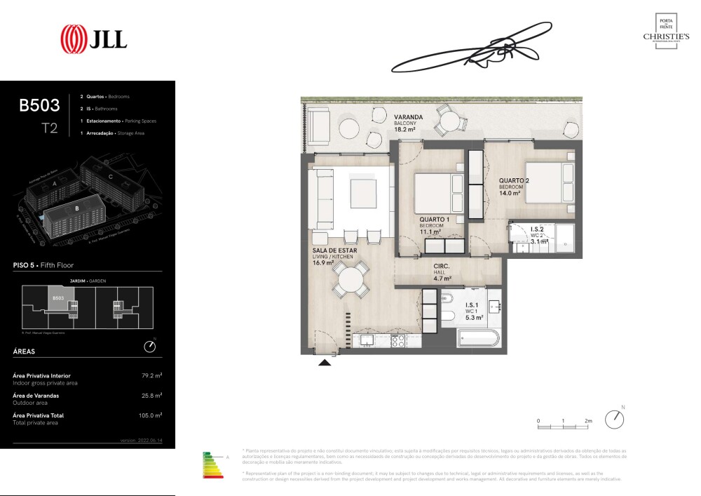 2 bedroom apartment, 79 sqm (gross floor area), with balcony, storage room and 1 parking space, in the Zen gated community, in Telheiras, Lisbon. Featuring modern and superior qual…
