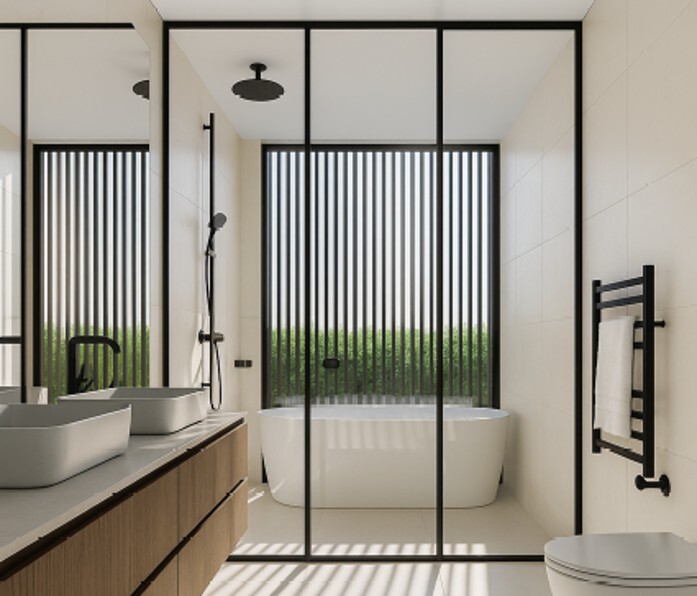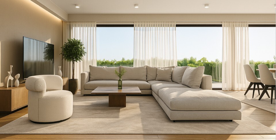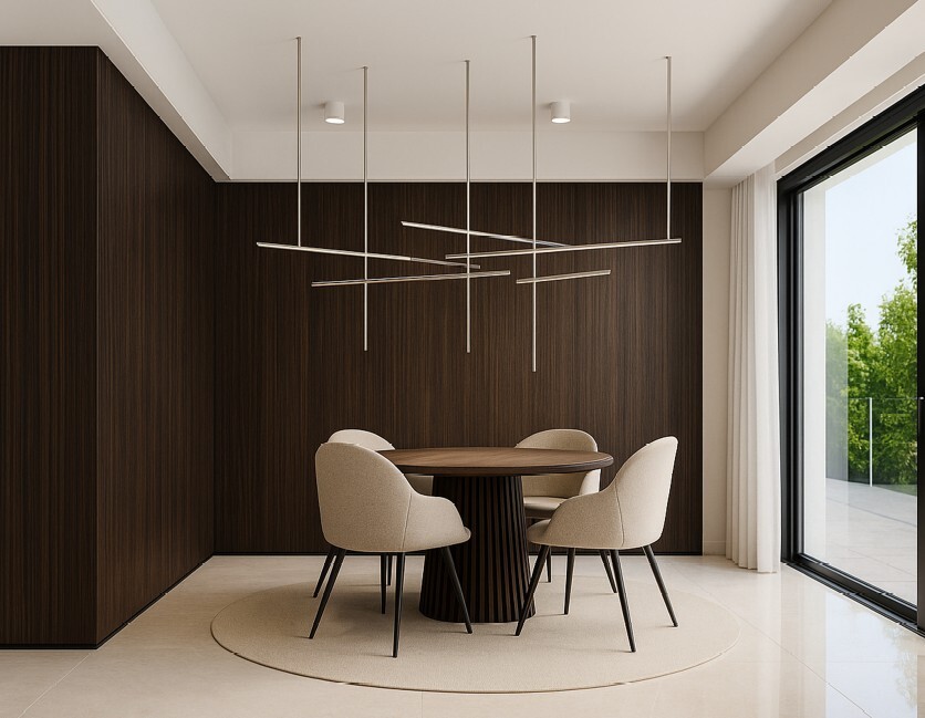 This contemporary apartment, currently under construction, stands out for its high-quality materials.