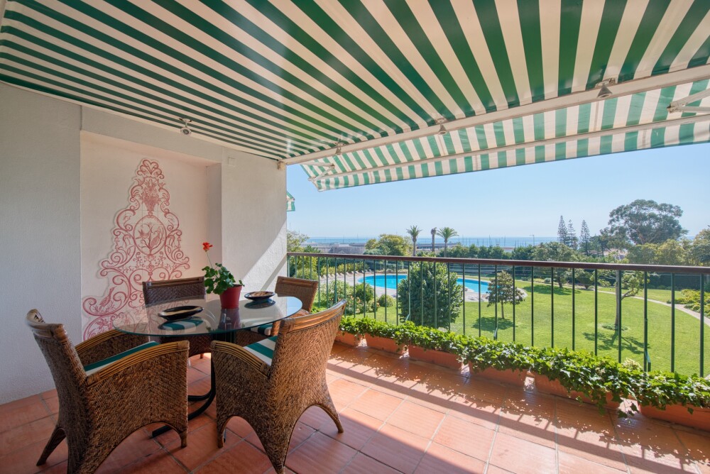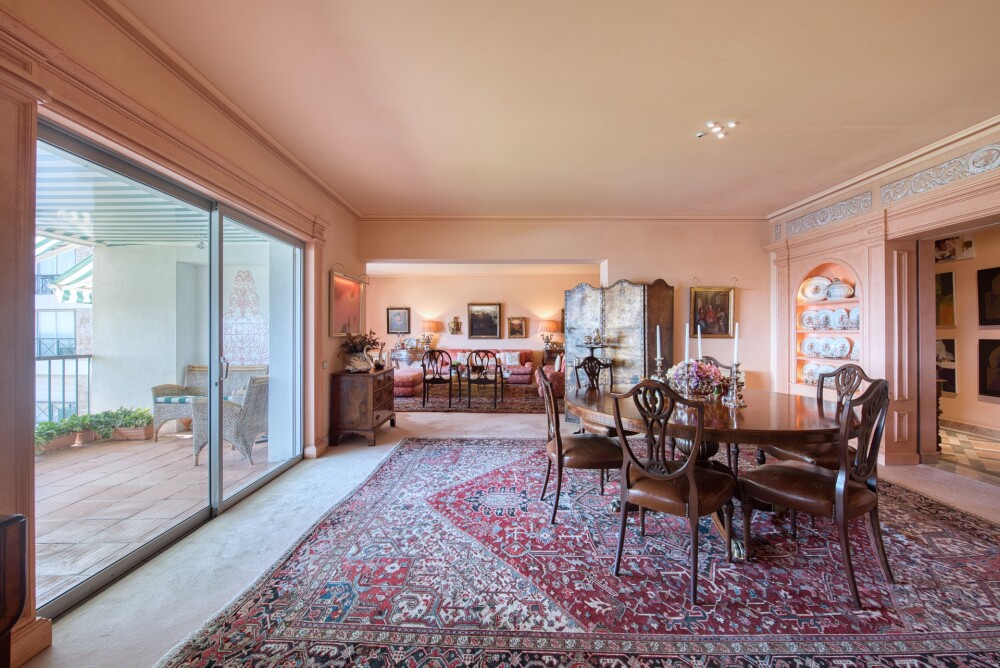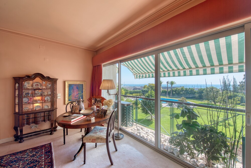 The apartment comprises a spacious entrance hall leading to the social area with three living rooms, all with sea views, one with access to a south-facing balcony also overlooking the sea, the Marina, and the condominium's pool and gardens.