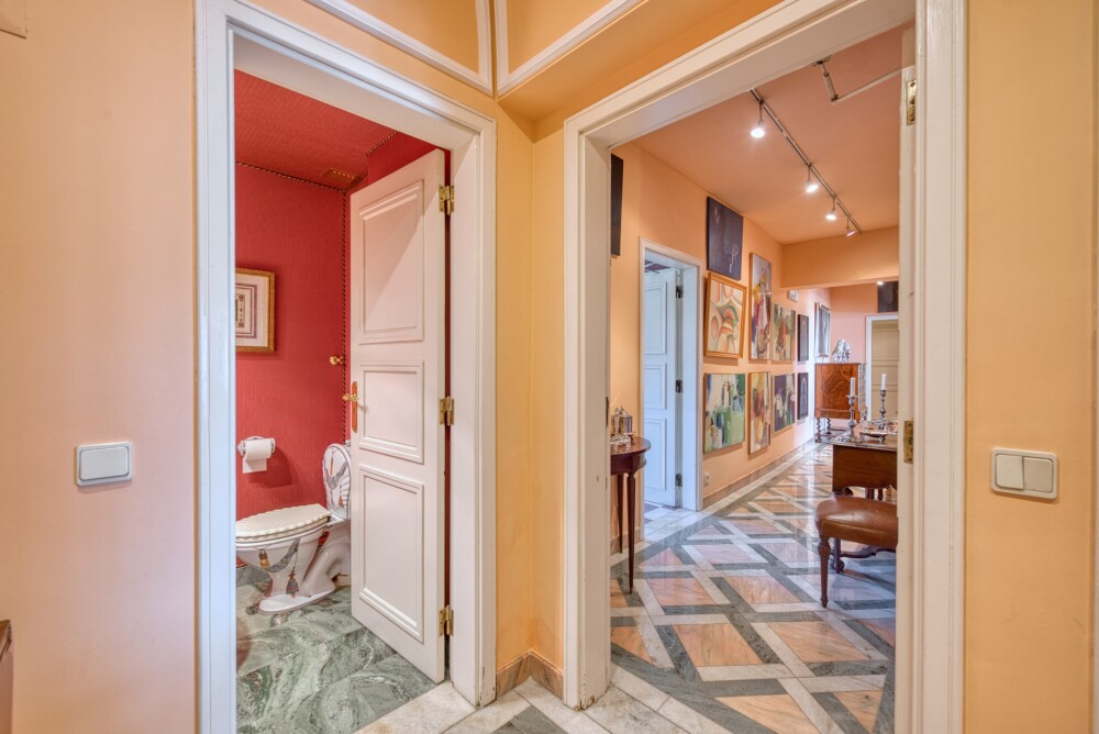 The property also features a guest bathroom, fully equipped kitchen with Miele appliances, laundry area, and service suite.