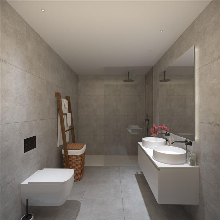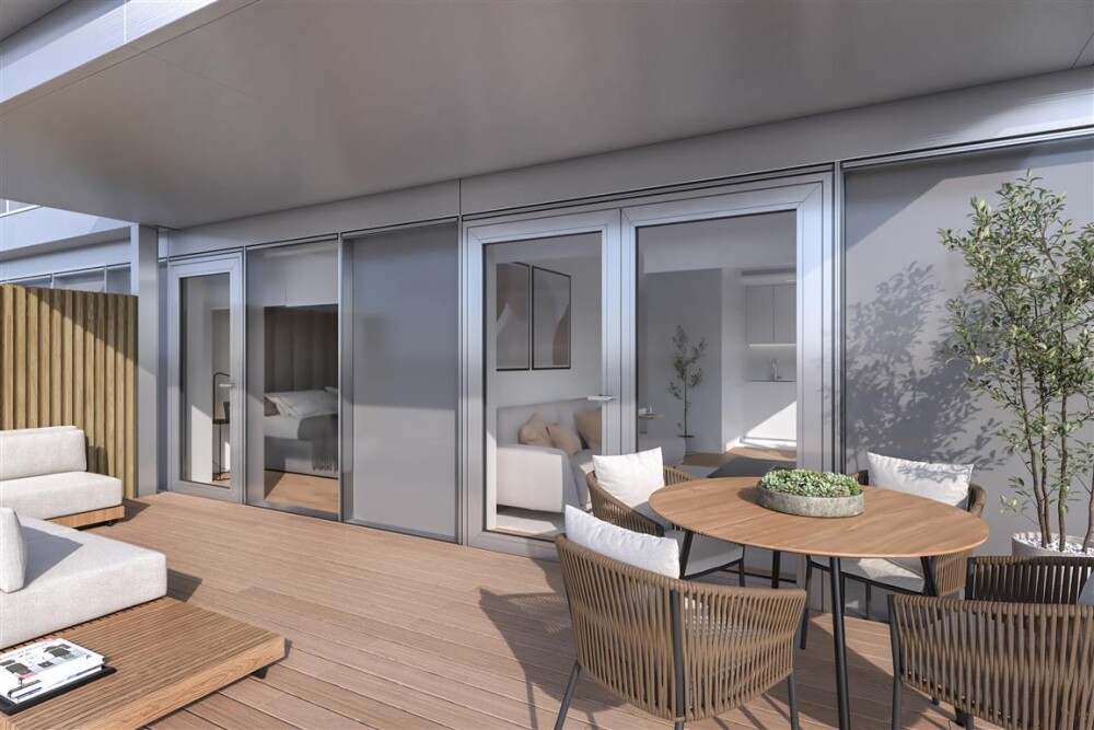 Each apartment at Sal D'Ouro Reserve offers outdoor space, parking facilities with electric vehicle charging, and a smart home system for remote control of lighting, blinds, appliances, temperature, and video surveillance of common areas.