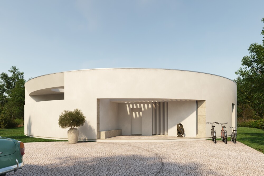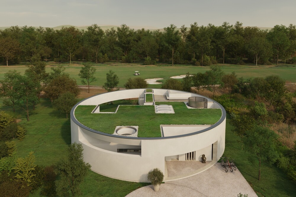 The project by architects Graça Dias and Egas Vieira envisions a villa that stands out for its view over the golf course and for the architectural detail of the swimming pool being integrated into the living room.