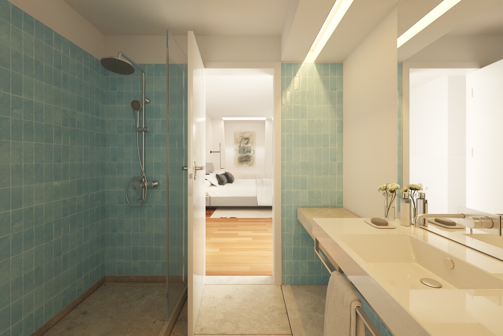 There is also access to the rooftop, where you can enjoy a 143 sqm garden with a 14 sqm water mirror and a 60 sqm terrace.