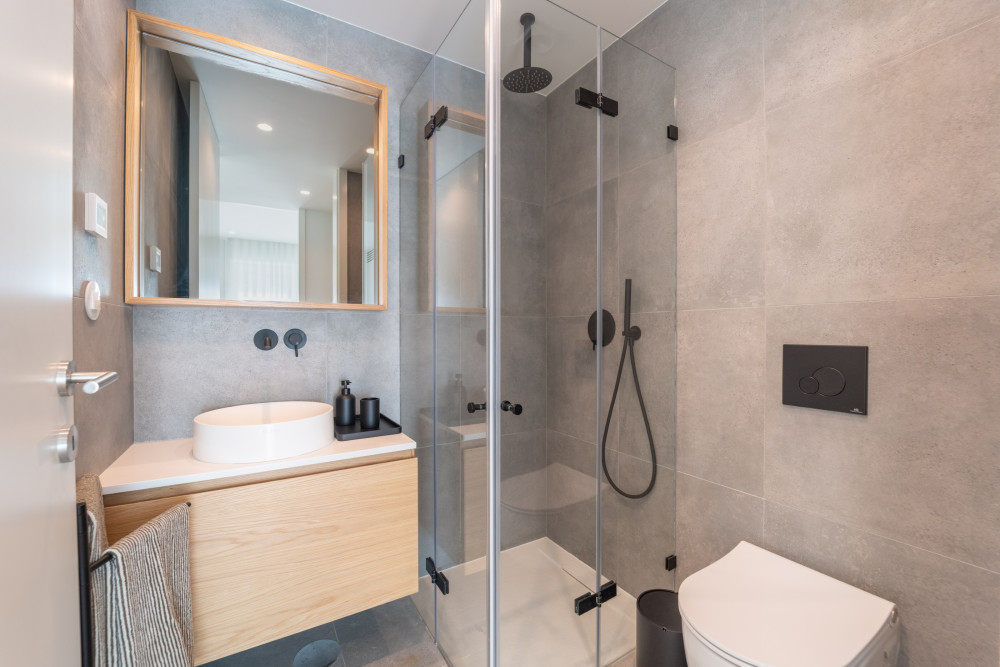 The social area is developed in open space, integrating the living room and kitchen, creating a modern, functional and welcoming space. The kitchen is fully equipped with Bosch appliances, ensuring efficiency and quality. The bathrooms have underfloor heating, and the flat also has air conditioning by ducts, ensuring thermal comfort throughout the year.