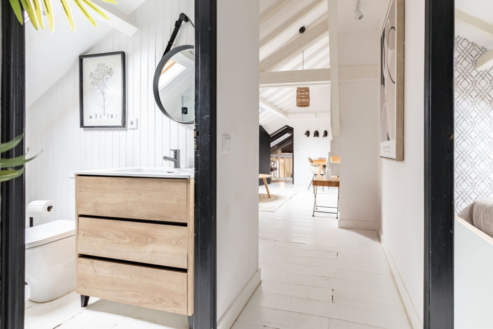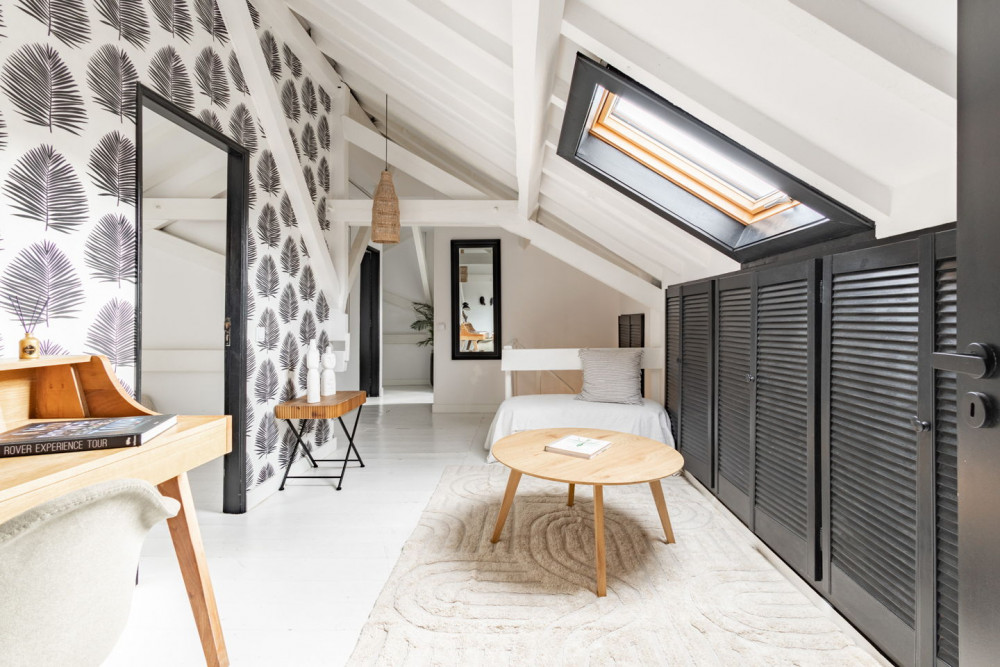 Originally built as a barn, it has recently been adapted for housing and remodeled with high-quality materials, creating a space where history meets contemporary sophistication.