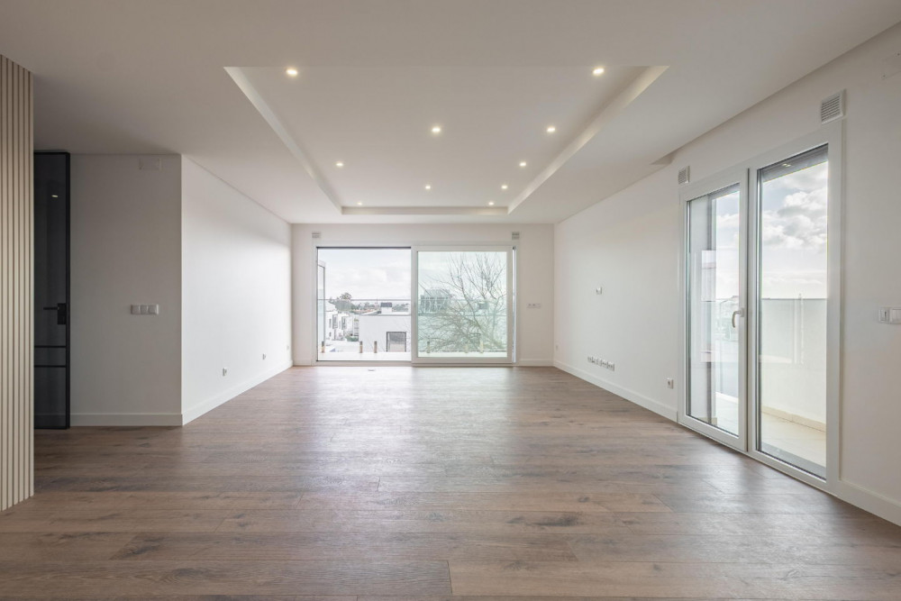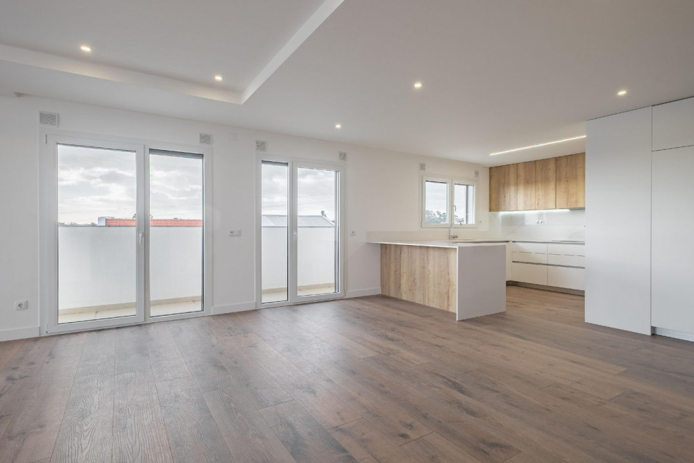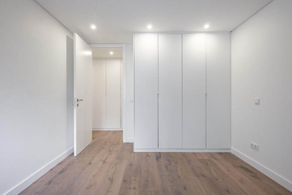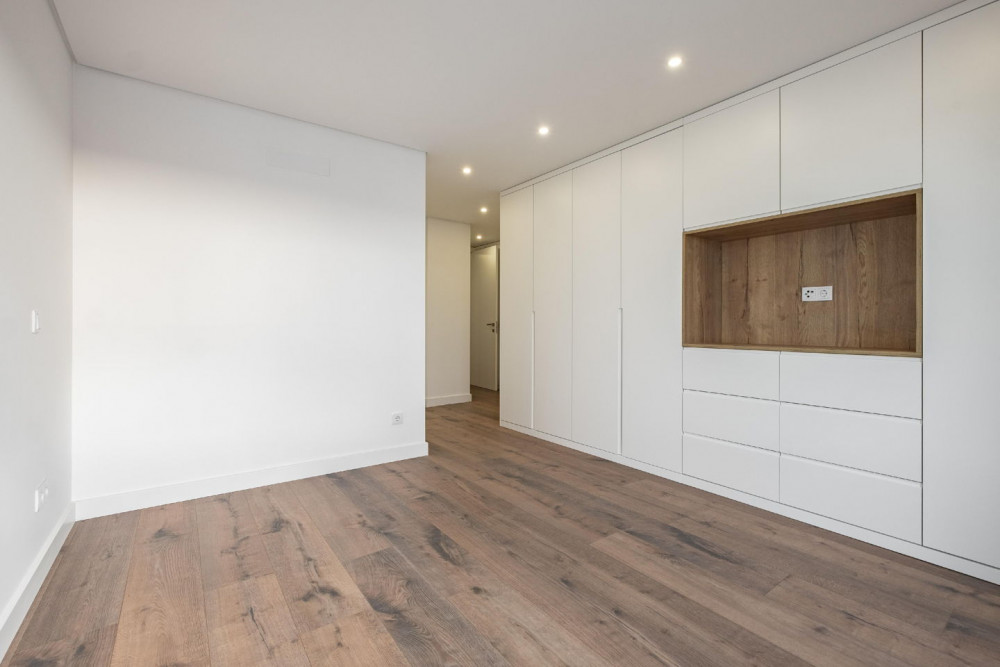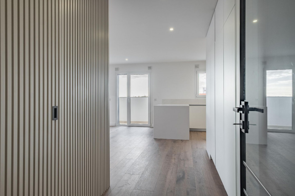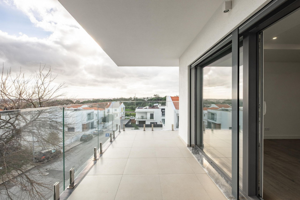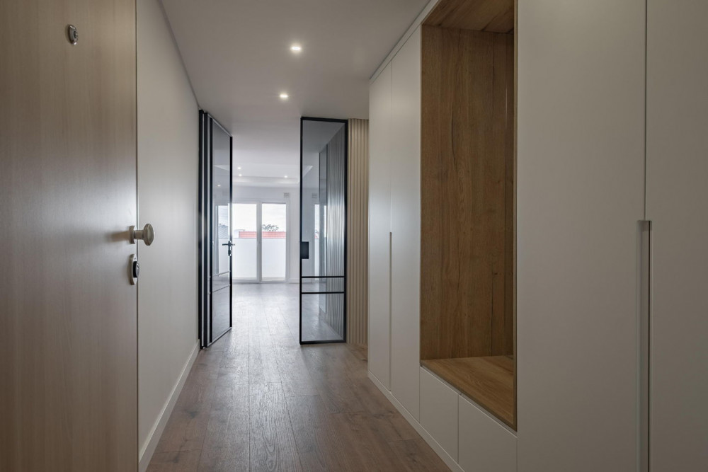 Outside, the building stands out for the quality of the materials: thermal walls with specific blocks, ETICS (external thermal insulation composite system) cladding, ceramic finish, and TRESPA phenolic resin. The balconies, with glass and stainless steel railings, offer generous spaces to enjoy the unobstructed view over the Serra da Arrábida and excellent sun exposure throughout the day – the ideal setting for leisure moments with family or friends.