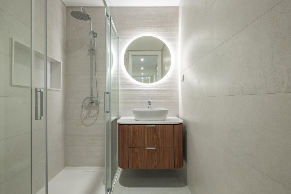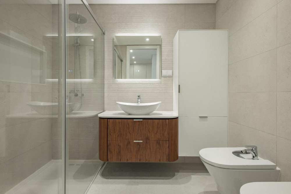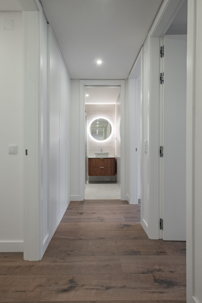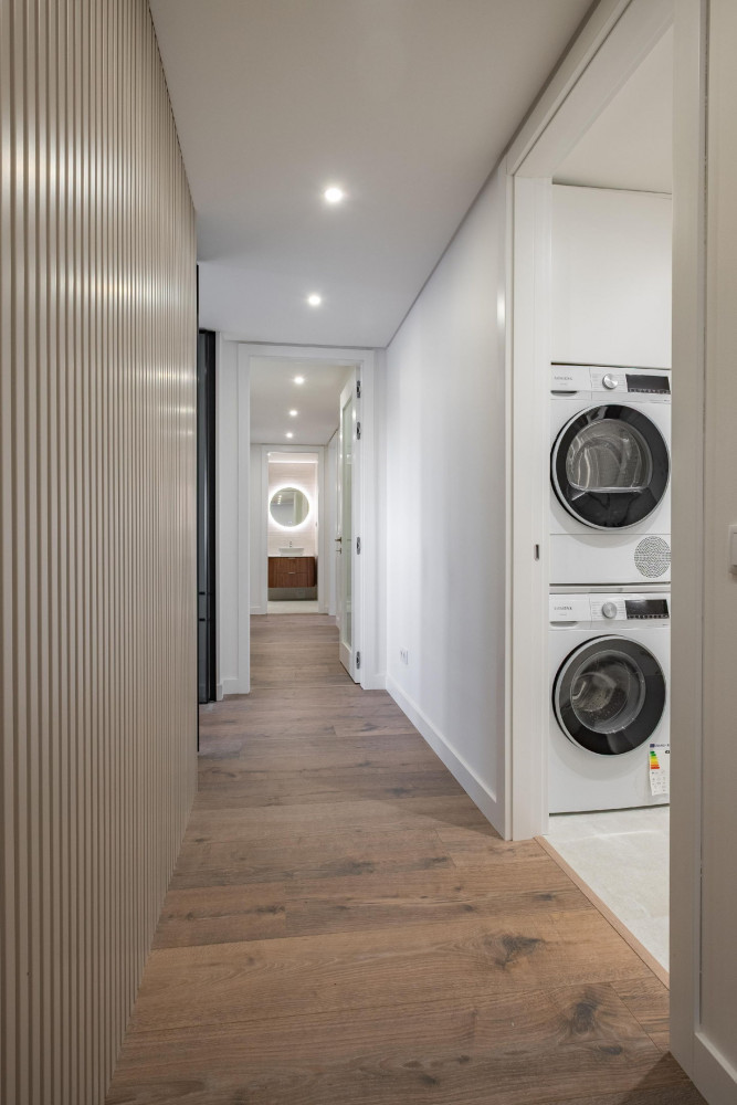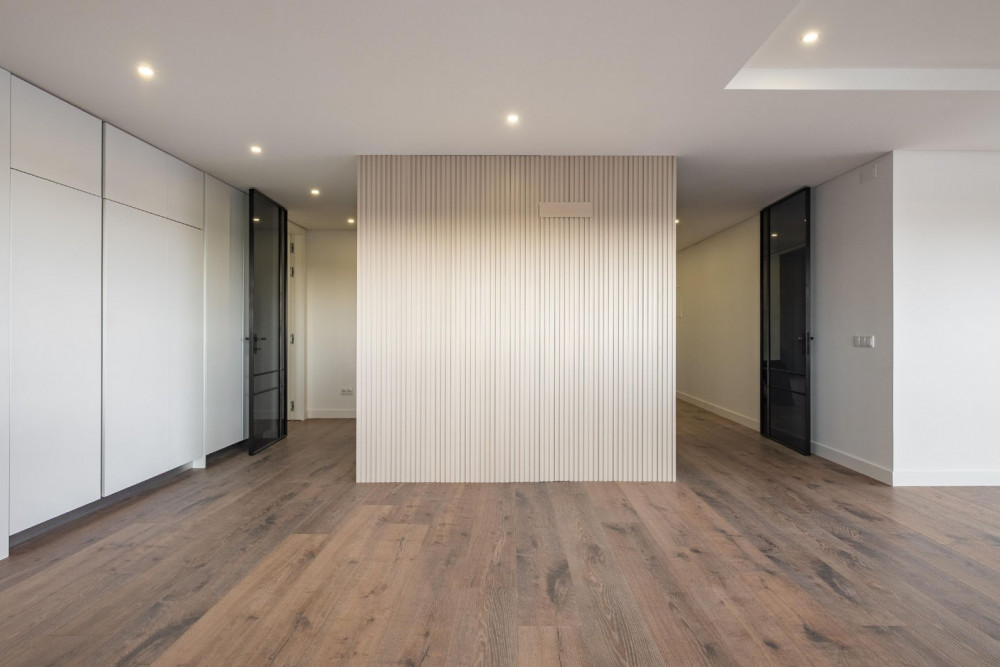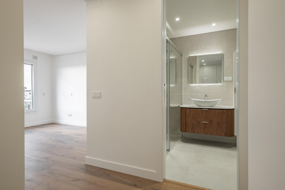 Comfort is a priority: frames with thermal and acoustic insulation, interior and exterior thermal insulation, thermal and acoustic comfort throughout the house, pre-installation of air conditioning, and a central vacuum system prepared to facilitate cleaning. In the wet areas, suspended fixtures, backlit mirrors with demister, as well as enclosures in the shower bases and bathtub, enhance the sense of well-being and modernity.