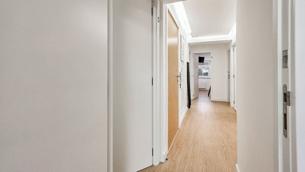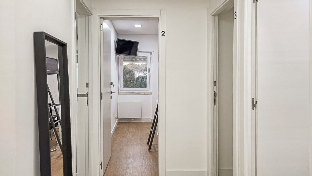 A 4-bedroom apartment in the center of Carnaxide, prepared for renting by rooms. Currently, three rooms are occupied, generating a monthly income of €1,800, with potential for increase upon full occupancy.