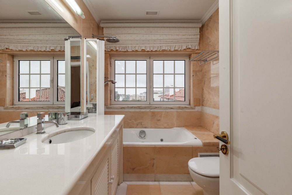 The location, on a quiet street of villas, ensures total privacy and excellent access to the main roads of Lisbon, as well as a diverse public transportation network (Metro and Buses).