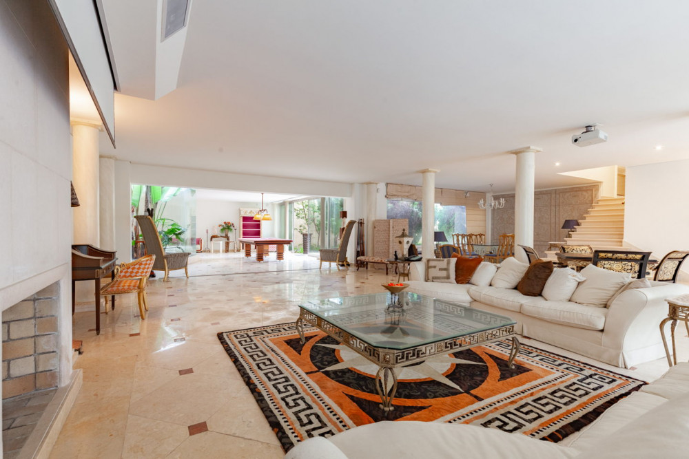 Highlights include Daikin VRV air conditioning throughout most of the house, top-of-the-line Technal window frames, and an alarm system with permanent video surveillance.