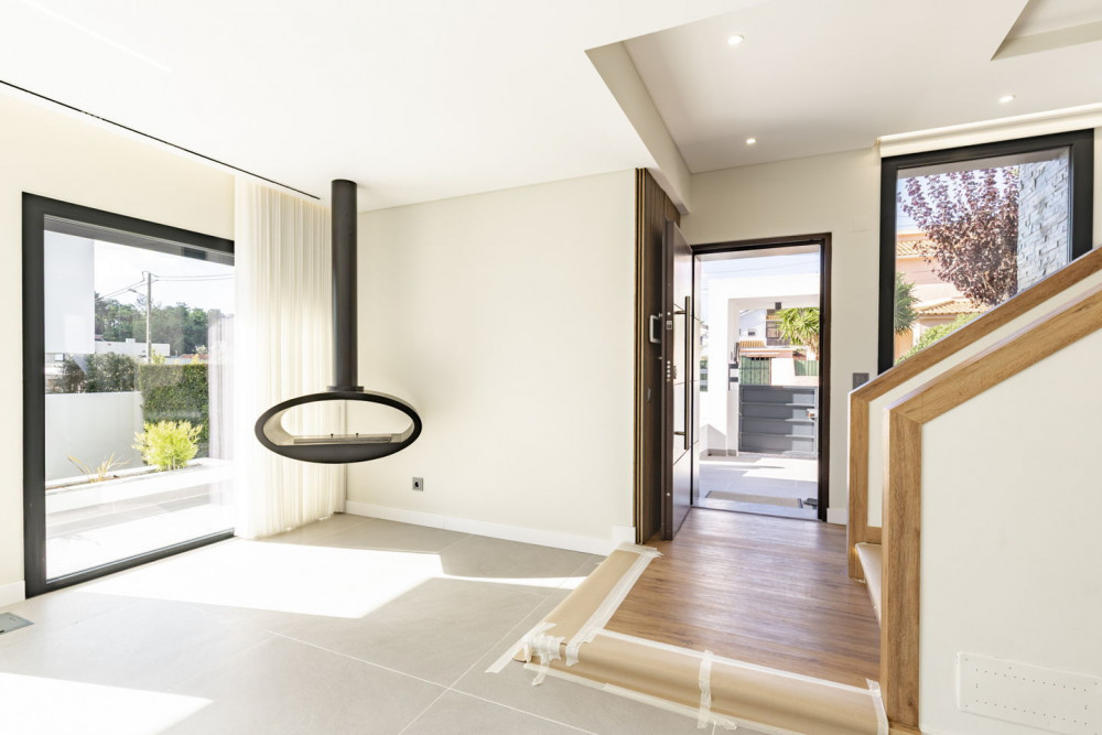 Set on a 494 m² plot with 215 m² of construction, this Villa stands out from the first glance. It is a home with soul, marked by a unique architectural design and details that make it truly special. On the upper floor, you find three spacious and bright suites; on the ground floor, besides a service WC, there is a cozy open space that integrates the kitchen and dining room, enriched by a suspended bioethanol fireplace that adds charm and comfort to the most tranquil nights. The exterior is undoubtedly one of the major highlights. The garden, carefully designed and maintained, surrounds the house with lush vegetation, trees, and small terraces that, when illuminated at night, create a magical atmosphere. Even the upper facade has its own garden, reinforcing the unique and distinctive character of this Villa. The pool area - oriented east-west to ensure sun all day long - is a true invitation to restful days, social gatherings, or romantic evenings. The connection between the interior open space and the natural lawn that surrounds the entire exterior area, with the pool as a focal point, creates a harmonious flow between indoor and outdoor, making each space even more welcoming. The property also offers a closed garage and covered parking for two cars, in addition to a support room. There is also an uncovered exterior area, fully prepared to be transformed into an outdoor kitchen, barbecue area, office, gym, or even a small studio - the possibilities are varied and can be adjusted to your lifestyle. Naturally, the Villa is equipped with all modern amenities: air conditioning, panels, central vacuum system, and much more. Location & access: About 25 minutes from Lisbon, with quick access both north and south of Portugal. Close to the Fertagus train, which takes you to the center of Lisbon in about 25 minutes without facing traffic, and the Surface Metro that connects to Cacilhas, where a 10-minute ferry takes you directly to downtown Lisbon. The best of life nearby: In just 10 to 15 minutes by car you find the Almada Forum, the best beaches in Portugal, shopping areas, hospitals, medical services, public and private schools, international colleges, universities, the Verdizela Biodiversity Park - one of the most important in Europe - and the iconic fossil cliff of Costa da Caparica, the scene of some of the most beautiful sunsets in the world. It also offers numerous sports options such as paddle tennis, tennis, pavilions, football clubs, and various sports, as well as the prestigious Aroeira Golf. Here, quality of life is a certainty. There is privacy, tranquility, comfort, nature, and space to enjoy every moment. It is the kind of house where we feel we are living the time... and not the time passing by us. This Villa has everything to be part of your best life. Schedule your visit.