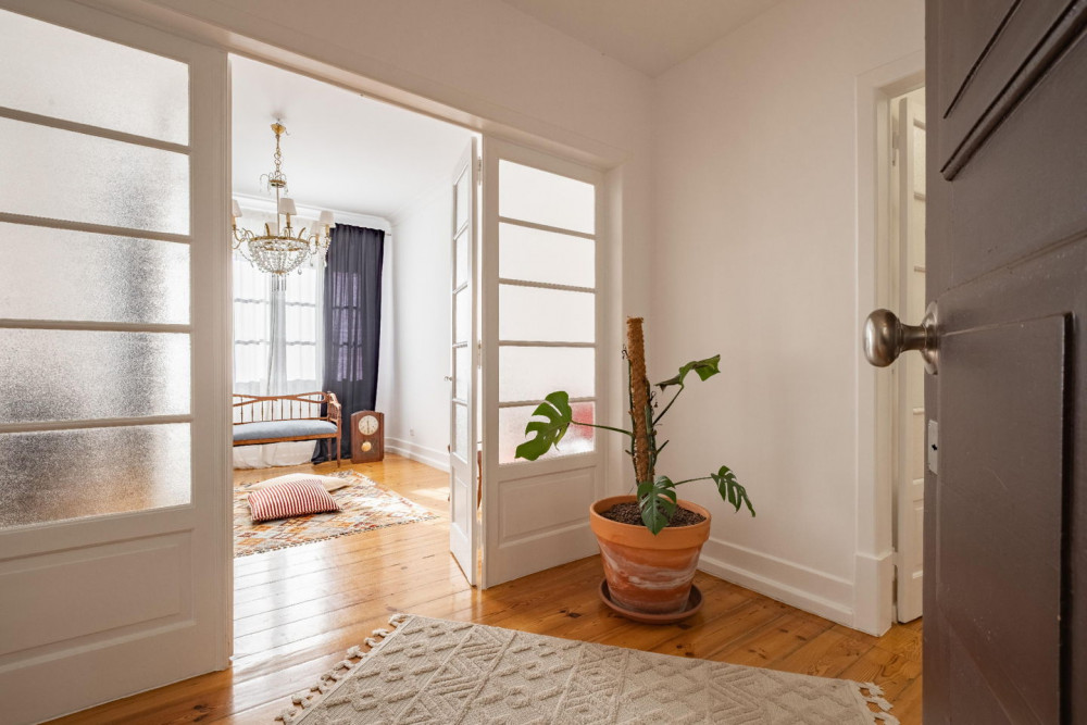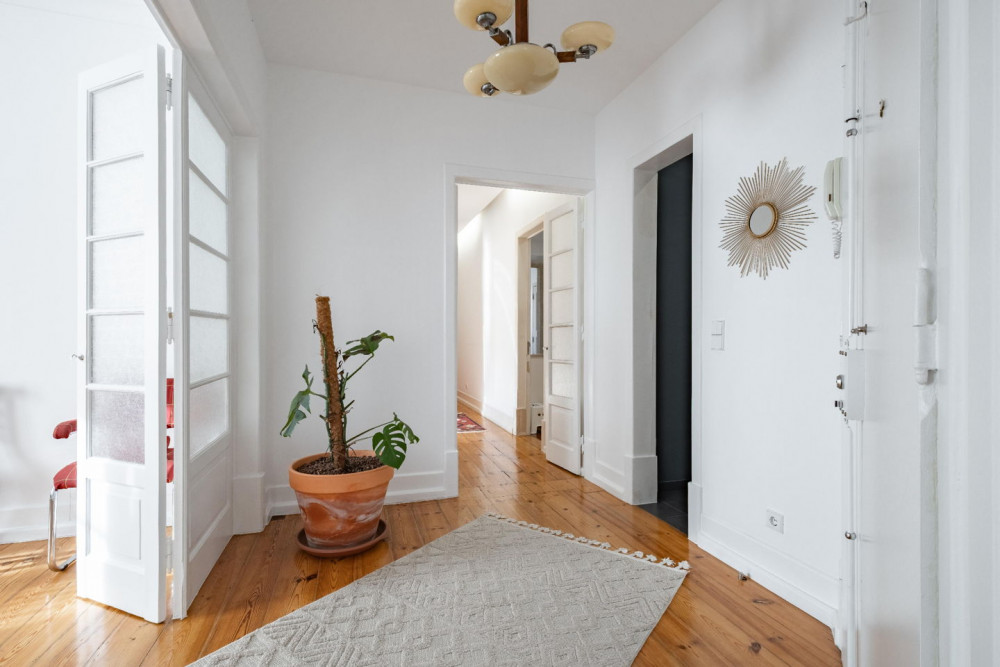 In the vibrant Bairro das Colónias, Anjos — one of the most genuine and cosmopolitan areas of Lisbon — is this magnificent 197 m² apartment, housed in a historic Art Deco building from 1930, designed by the prestigious architect Norte Júnior, author of some of the city's most iconic landmarks, such as the famous Café A Brasileira.