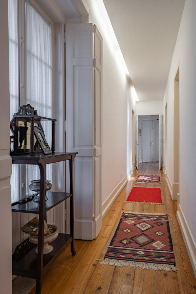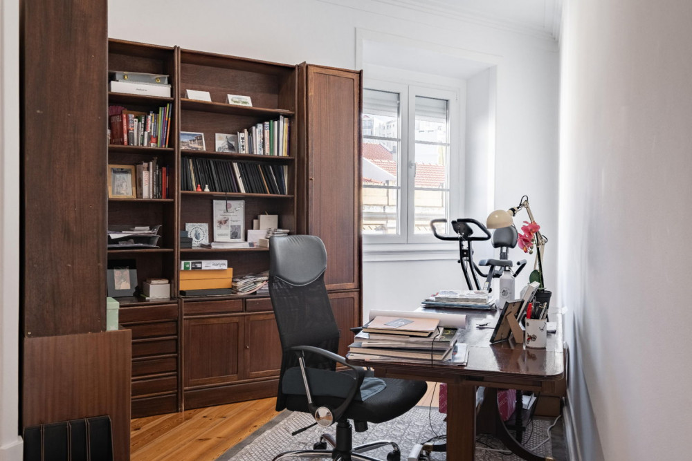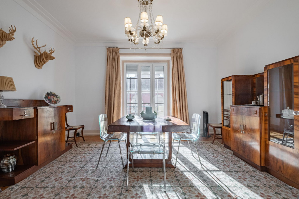 The interior layout is versatile and elegant: two living rooms, an independent dining room (19 m²), library, office, and two large bedrooms — the main one complemented by an 8 m² closet. Thanks to the flexibility of the existing rooms, the apartment can function as a T2, T3, T4, or even T5, without the need for structural works, simply by reorganizing the spaces according to each family's lifestyle.