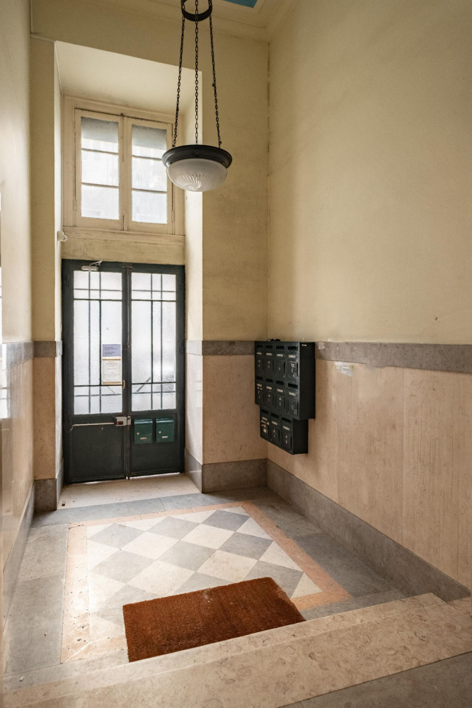 Completely renovated in 2012, the apartment combines the charm of period architecture with contemporary comfort. It retains original details, such as the plank flooring and high ceilings, now accompanied by double-glazed windows with thermal and acoustic insulation and electric shutters (installed in 2020).