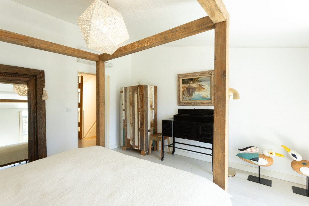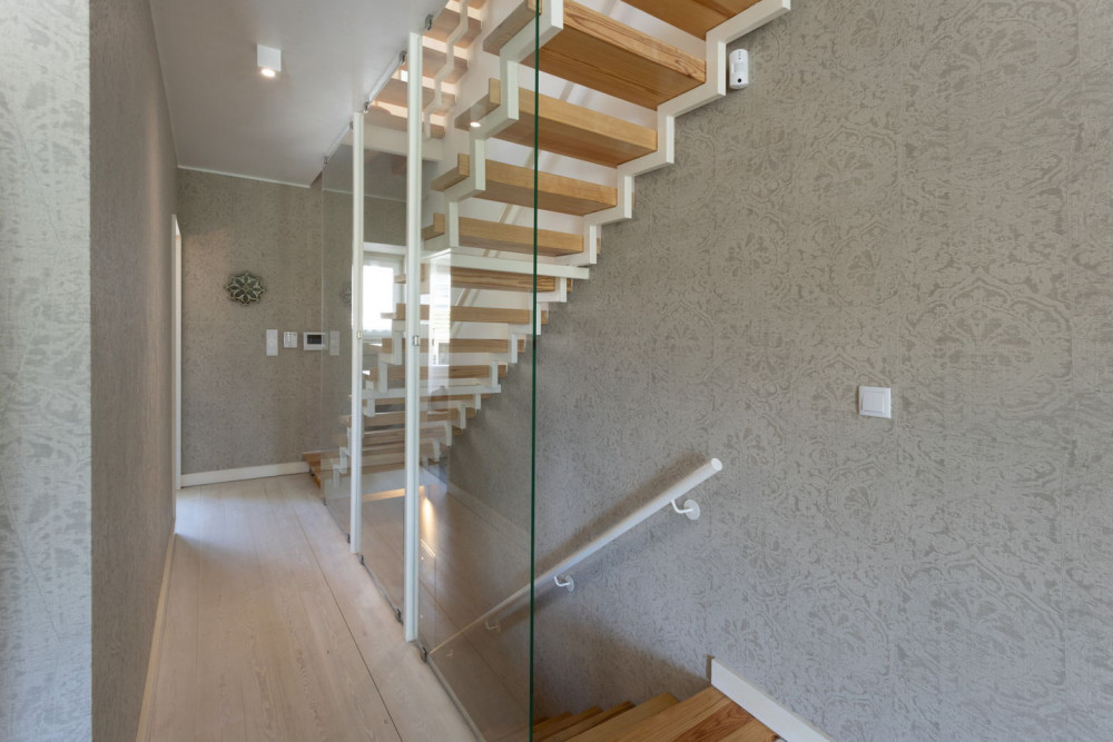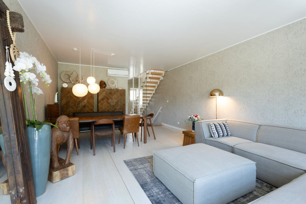Spread over 3 floors, the house features 6 rooms, 5 bedrooms, and 4 bathrooms, 2 with bathtubs, 1 with a shower cabin, and a guest bathroom without a shower. The kitchen is fully equipped with Bosch appliances, white lacquered cabinets, and a black stone countertop. The living room and bedrooms have air conditioning, the bedrooms have built-in wardrobes, and the entire house has double-glazed tilt-and-turn windows, ensuring comfort and thermal efficiency.