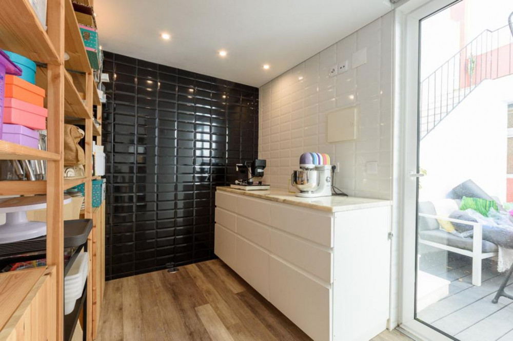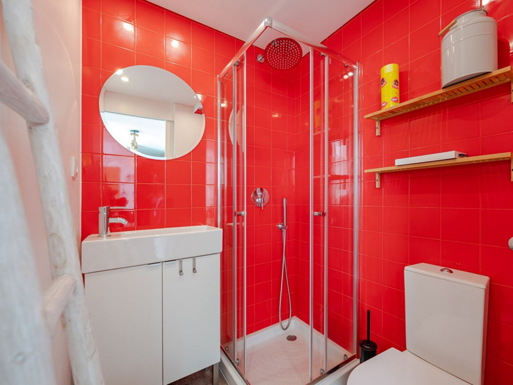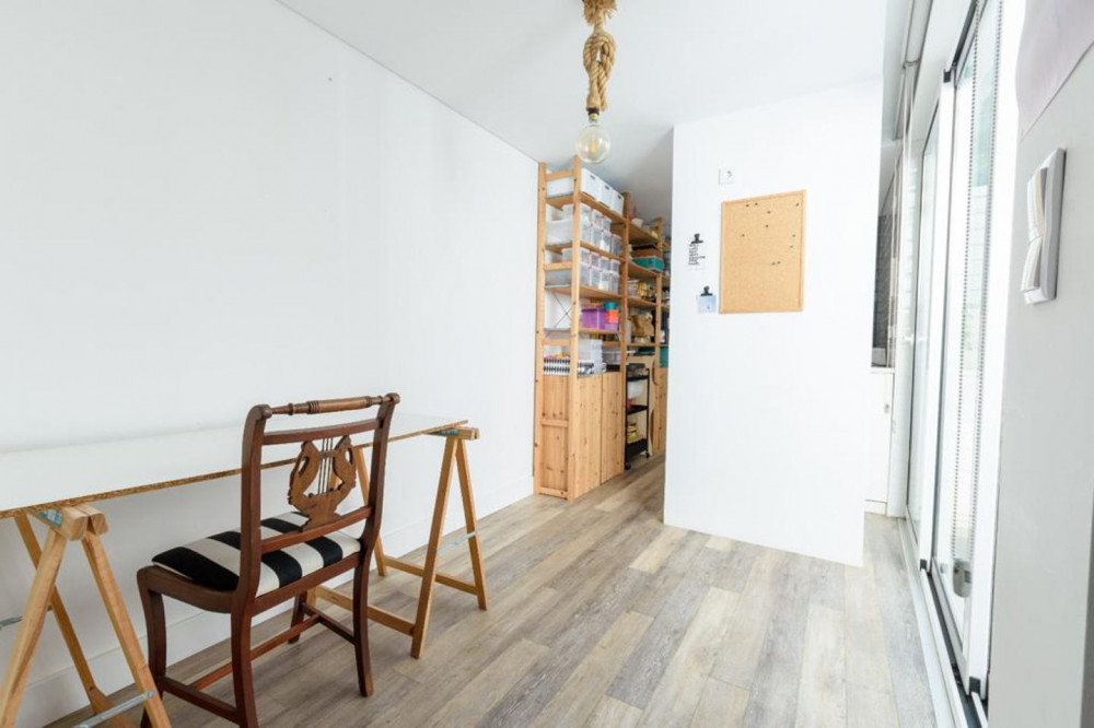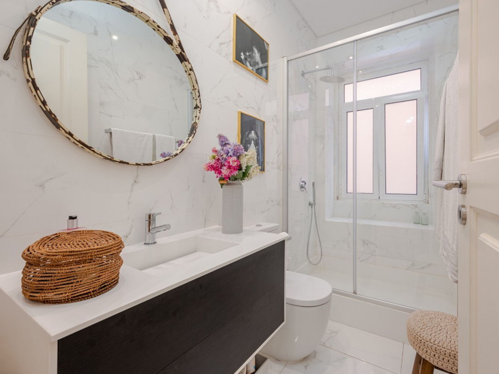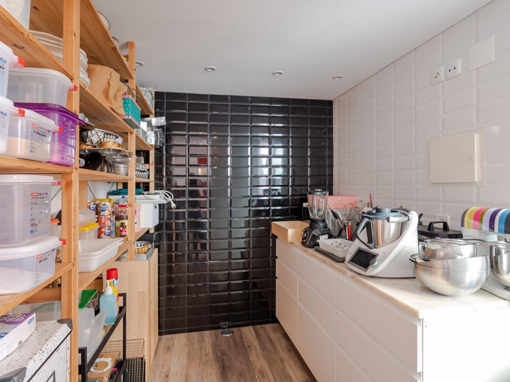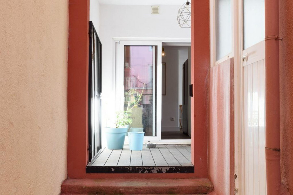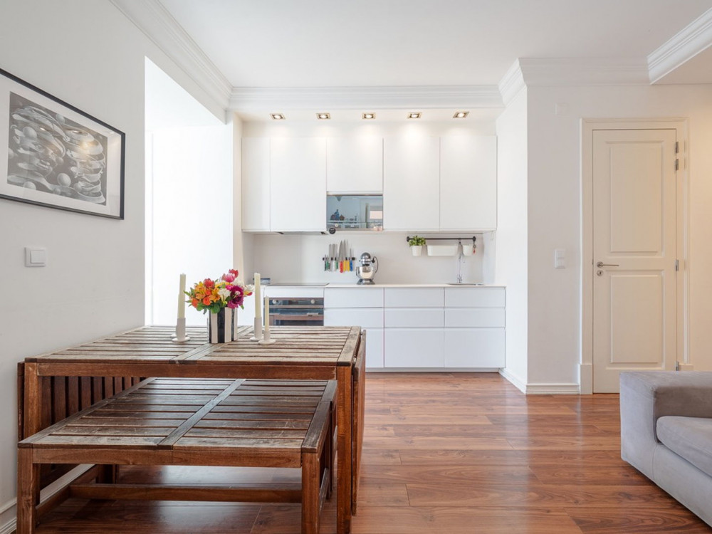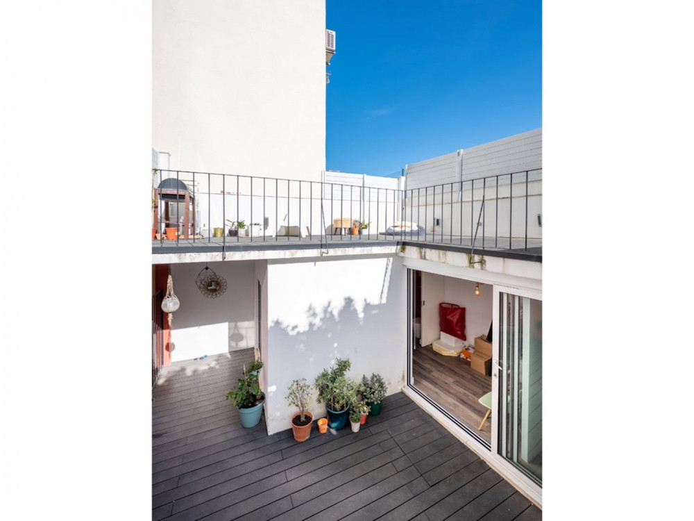 Renovated T2 in Campolide, where neighborhood life intersects with modern comfort. The house revolves around a generous deck terrace—a sunny retreat for meals—sitting atop the roof of an annex on the second terrace of the lower floor. This annex is not part of the gross private area, but offers a perfect place for an office, studio, or even to host visitors, expanding daily possibilities.