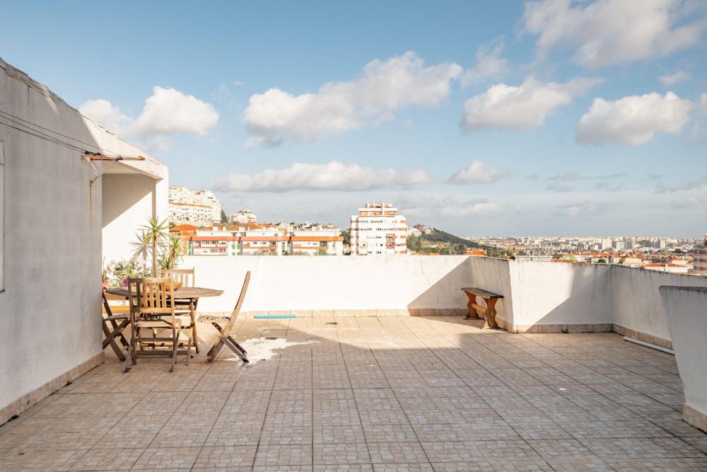 The terrace is one of the main highlights of this property — a true urban retreat, with a barbecue and unobstructed views over Amadora, ideal for enjoying outdoor moments and gatherings at sunset.
