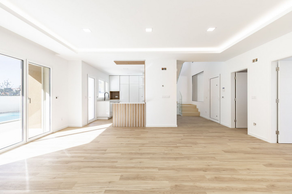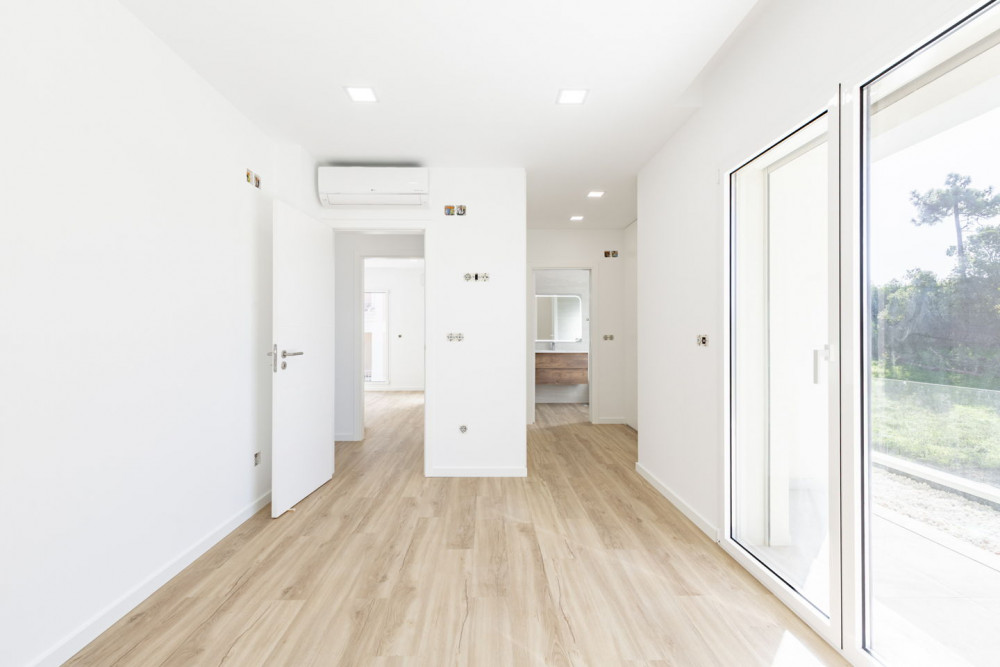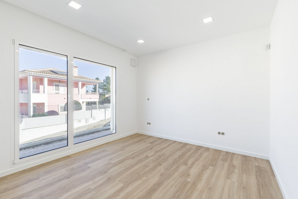 We present an exclusive T4 Villa, with three suites, one bedroom, and 5 bathrooms, located in Charneca de Caparica — a true haven of tranquility and elegance, just minutes from Lisbon and the beaches of Costa da Caparica. With 164 m² of gross area and situated on a 368 m² plot, this property perfectly combines contemporary design, comfort, and nature. Natural light fills each space, the finishes reveal refined taste, and the surroundings convey a rare sense of privacy and serenity — in a highly sought-after residential area, whose geographical location creates a natural condominium atmosphere, where well-being and security coexist with tranquility. Right at the entrance, the welcoming porch and winter garden create an environment that invites you to enter and stay. On the ground floor, the large living room with an open space kitchen (48 m²) is the heart of the house — modern, functional, and full of light. Large glass doors extend the space to the outside, where the pool and leisure area await for moments of pure pleasure. The kitchen, elegant and fully equipped, stands out for the peninsula that combines aesthetics and functionality. On this floor, there is also a multifunctional room, ideal as an office or guest room, a bathroom with shower, and a garage with a laundry area. Going up to the upper floor, comfort takes shape in three bright suites, designed to offer privacy and well-being. The master suite is a true retreat, with a private balcony, walk-in closet, and bathroom with double sink and shower. The two additional suites maintain the same level of detail and refinement, with built-in wardrobes and private bathrooms with windows, ensuring ventilation and natural light in all spaces. The exterior is a natural extension of the house — designed to live, entertain, and relax. The leisure area of about 120 m² is perfect for moments with friends and family. The private pool, porch with barbecue, outdoor shower, and support bathroom create the ideal setting for long summer days. The front garden, with about 75 m², adds charm and balance to the ensemble, complemented by additional outdoor parking. In technical terms, this Villa stands out for its A+ energy certification and a set of equipment that ensures efficiency, comfort, and security: heat pump, photovoltaic panels, pre-installation of air conditioning, central vacuum, alarm system, video intercom, electric shutters, and automated gates. LED lighting, noble materials, and attention to detail reflect a high-quality construction, designed for those seeking more than just a house — they seek quality of life. The location enhances its value: in a quiet and safe area, with quick access to commerce, schools, health centers, main roads, transportation, and beaches, this property offers the perfect balance between family life, privacy, and urban convenience. This is not just a house — it is a property that reflects the affinity that should exist between the consultant and the home it represents. There is a genuine connection, a feeling of identification and admiration that transcends the simple act of selling. Because there are homes that choose us, and this is one of them.