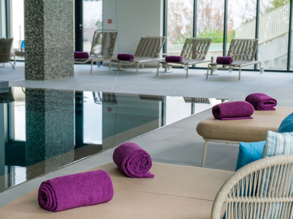 Access to the indoor and outdoor pool with changing rooms, bath towel exchange, and sun loungers;